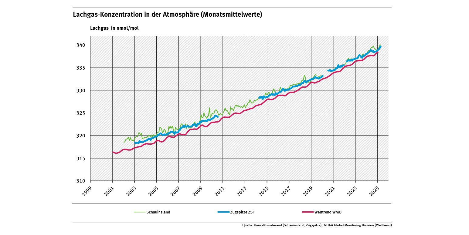 Lachgas-Konzentration in der Atmosphäre (Monats- und Jahresmittelwerte)