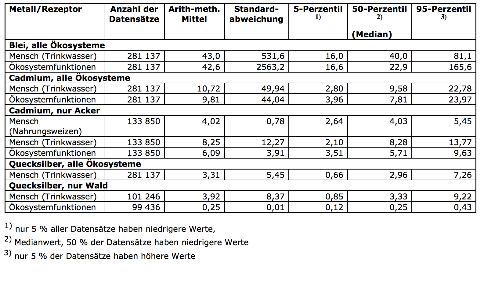 Statistische Kennwerte der Critical Loads Pb, Cd, Hg