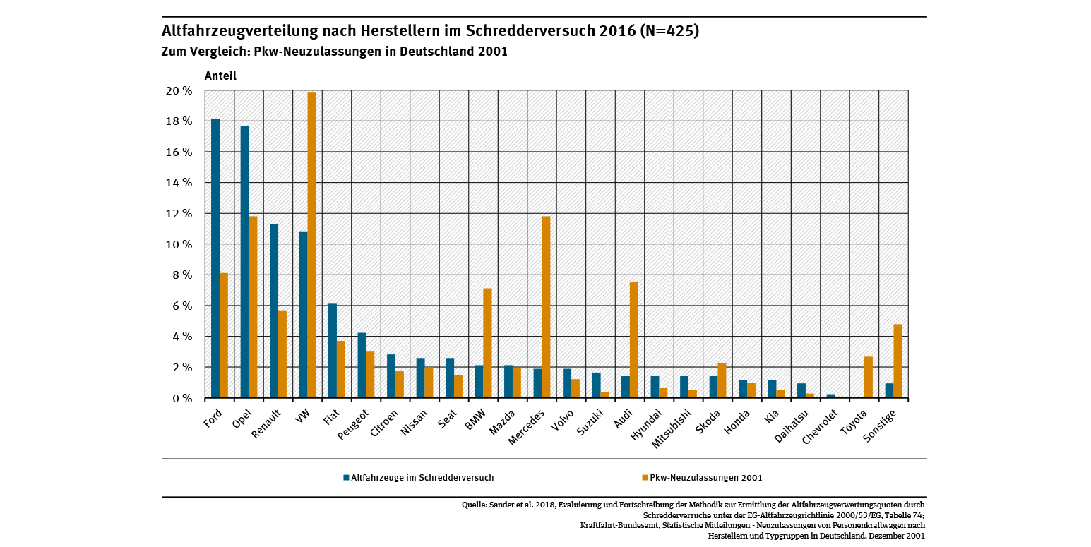Altfahrzeugverteilung nach Herstellern im Schredderversuch 2016