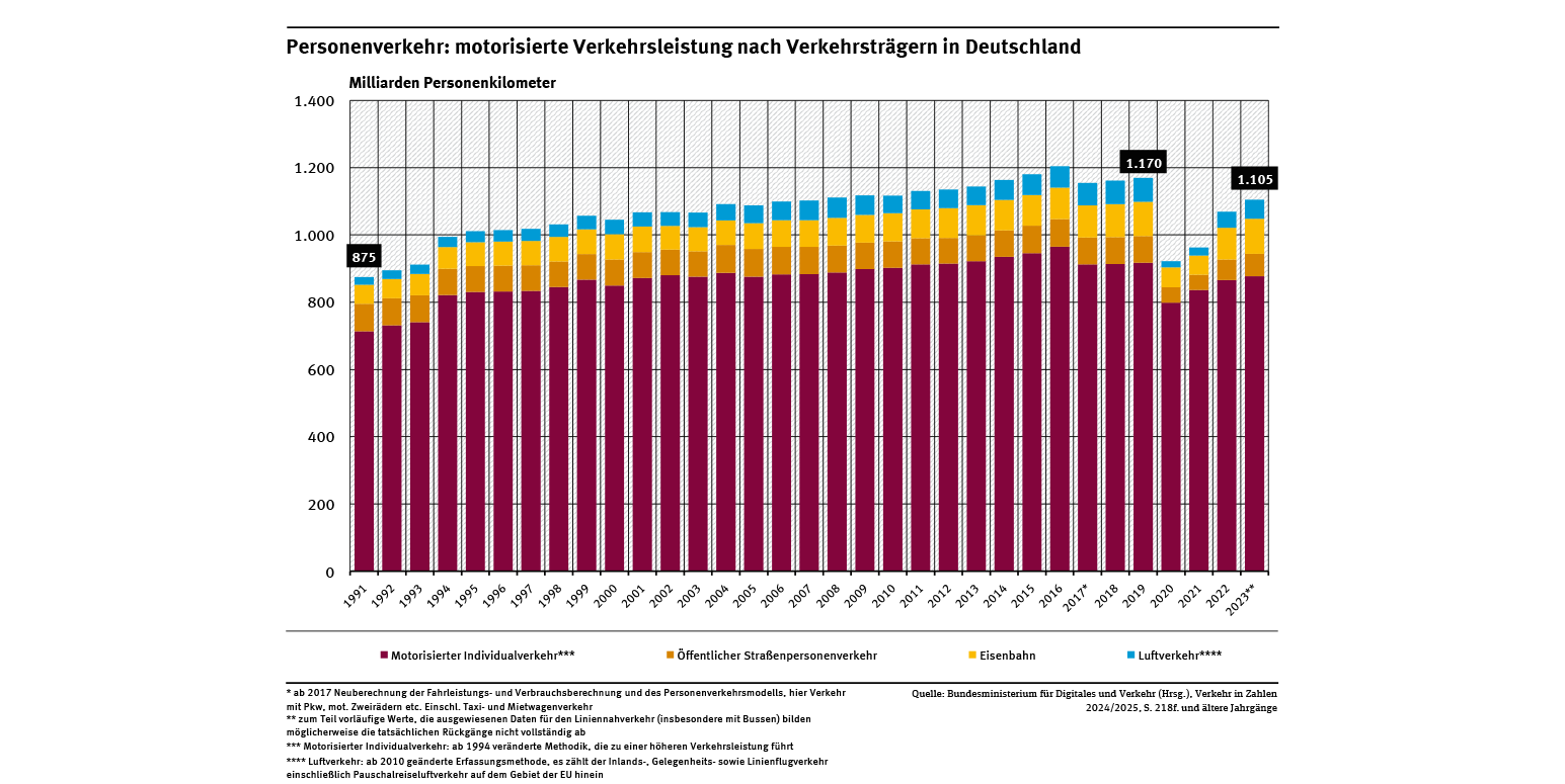 Personenverkehr: motorisierte Verkehrsleistung nach Verkehrsträgern in Deutschland