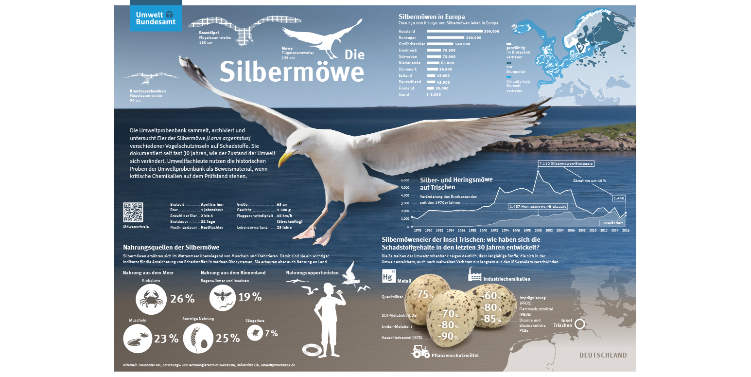 Schaubild zur Silbermöwe in Europa, Nahrungsquellen der Silbermöwe, Silbermöweneier der Insel Trischen: wie haben sich die Schadstoffgehalte in den letzten 30 Jahren entwickelt?