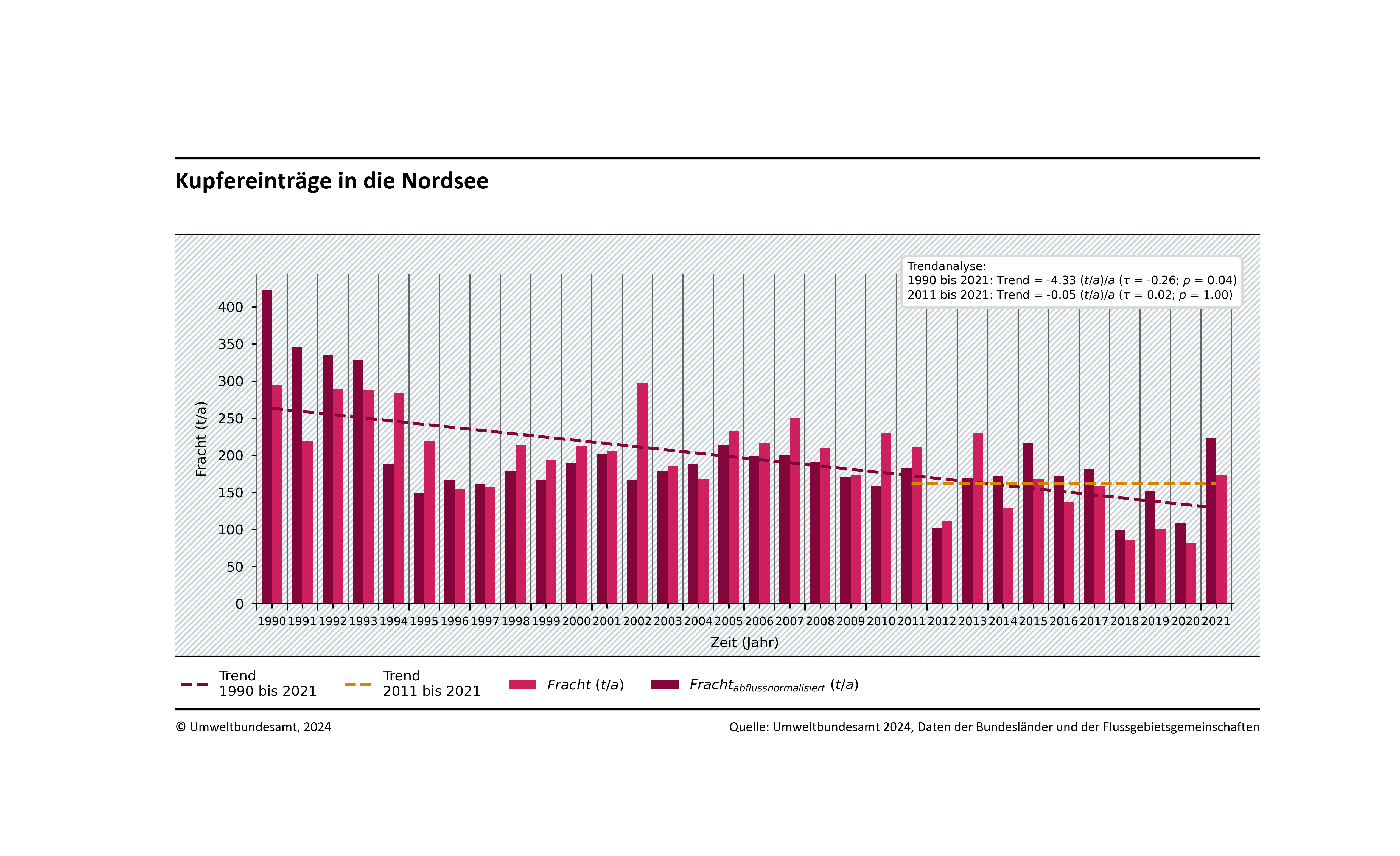 Entwicklung der Gesamtdepositionen von Blei, Cadmium und Quecksilber in die Nordsee
