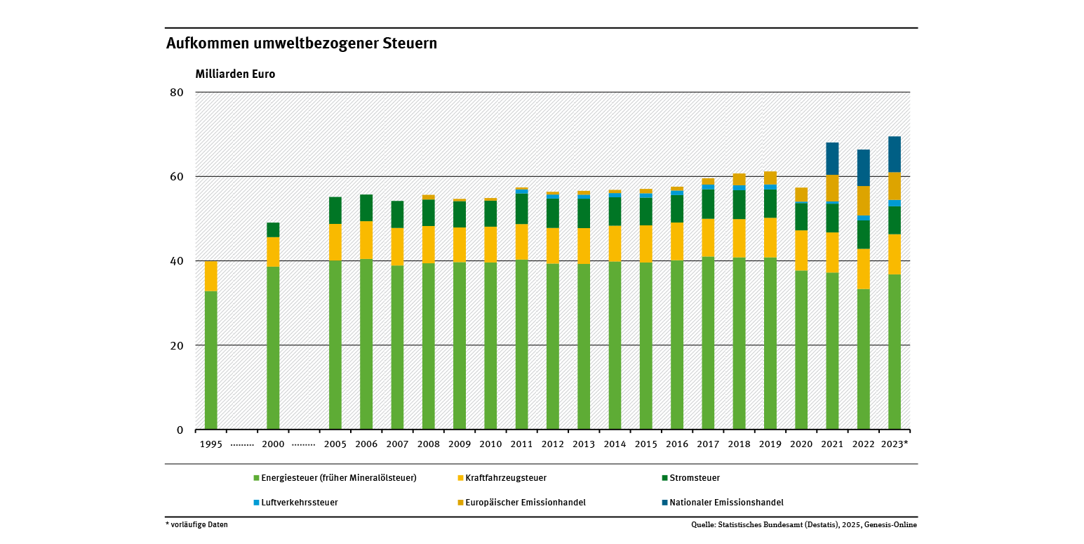 Aufkommen umweltbezogener Steuern (ohne Anteil an den gesamten kassenmäßigen Steuereinnahmen)