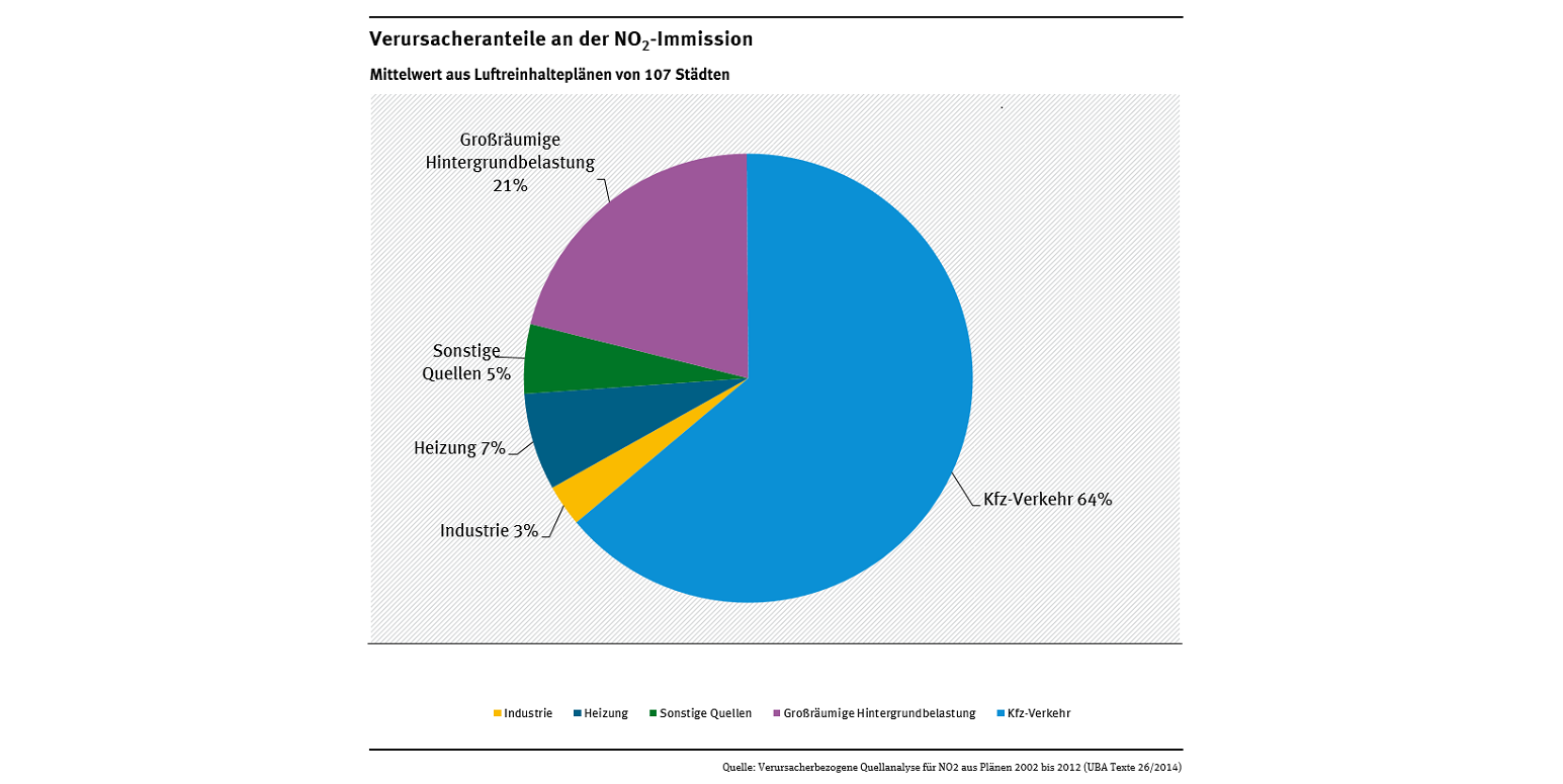 Anteile von Verursachern an den Stickstoffdioxid-Konzentrationen in deutschen Städten