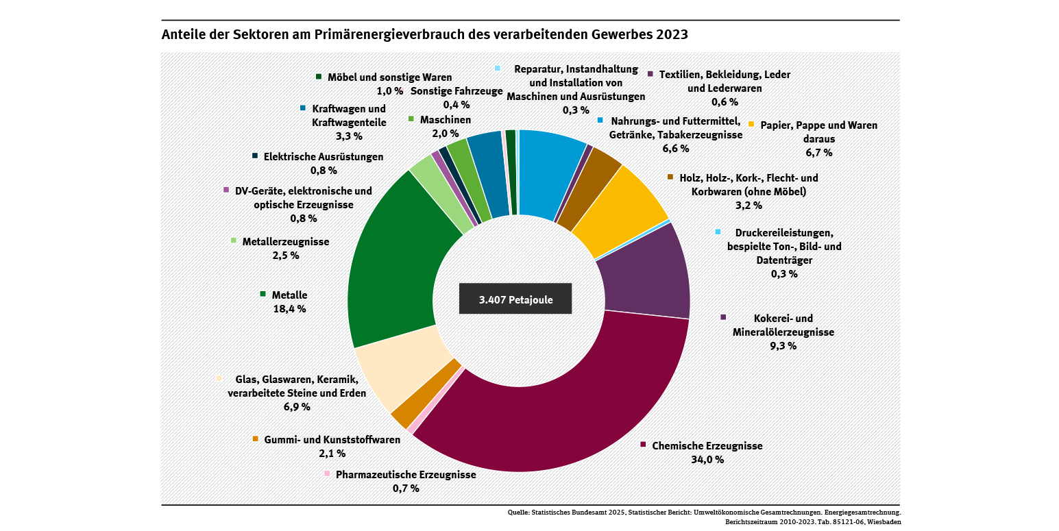 Anteile der Sektoren am Primärenergieverbrauch des verarbeitenden Gewerbes 2023