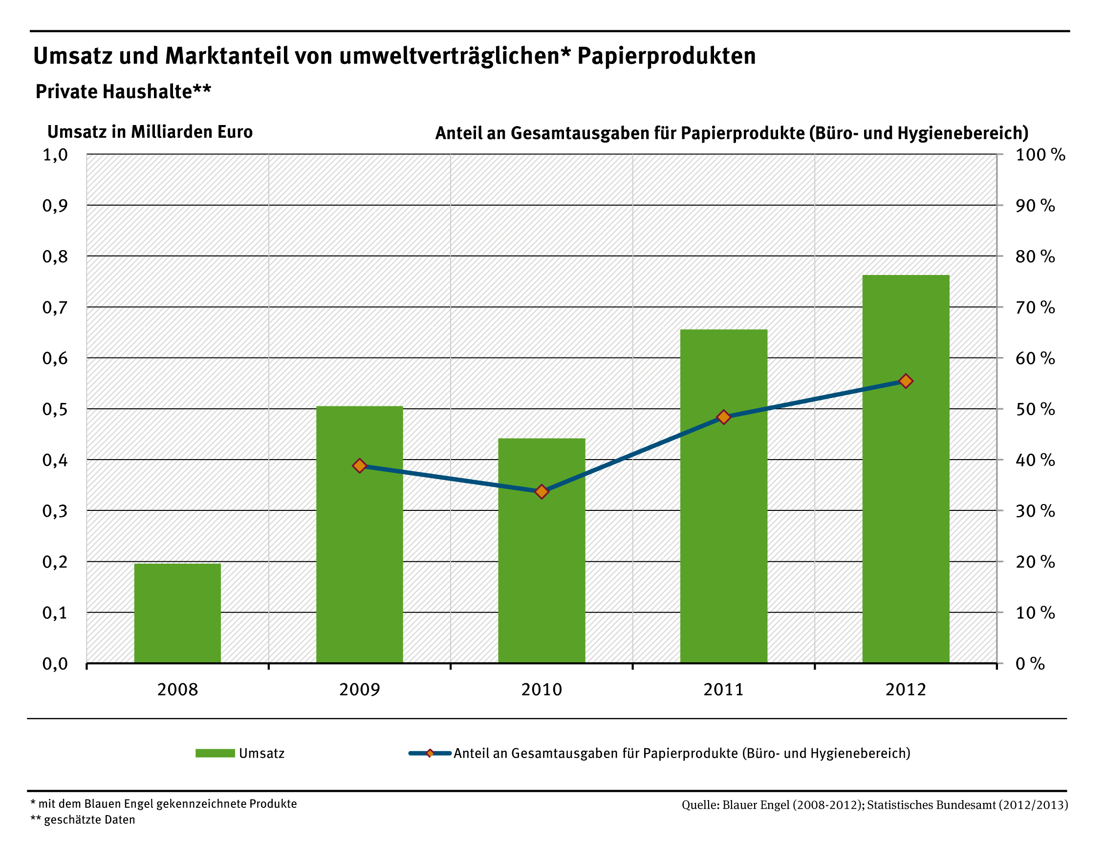 Umsatz und Marktanteil von umweltverträglichen Papierprodukten