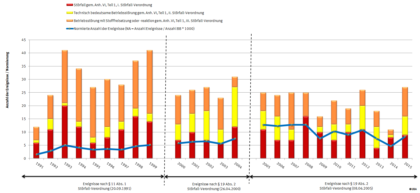 Nach der Störfall-Verordnung gemeldete Ereignisse in Deutschland in den Jahren 1991 bis 2015