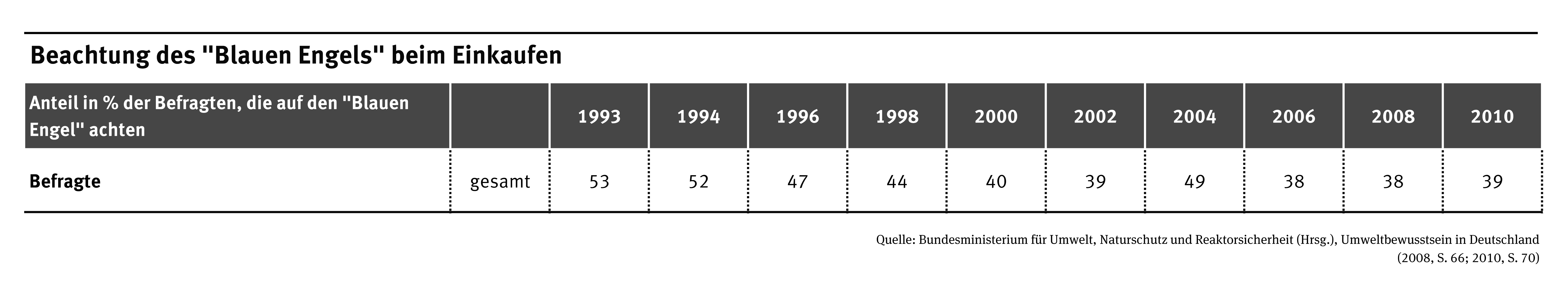 Tab: Beachtung des "Blauen Engels" beim Einkaufen