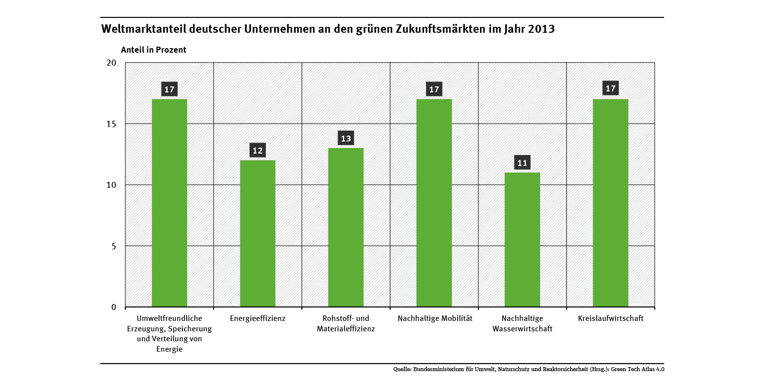 Weltmarktanteil deutscher Unternehmen an den grünen Zukunftsmärkten