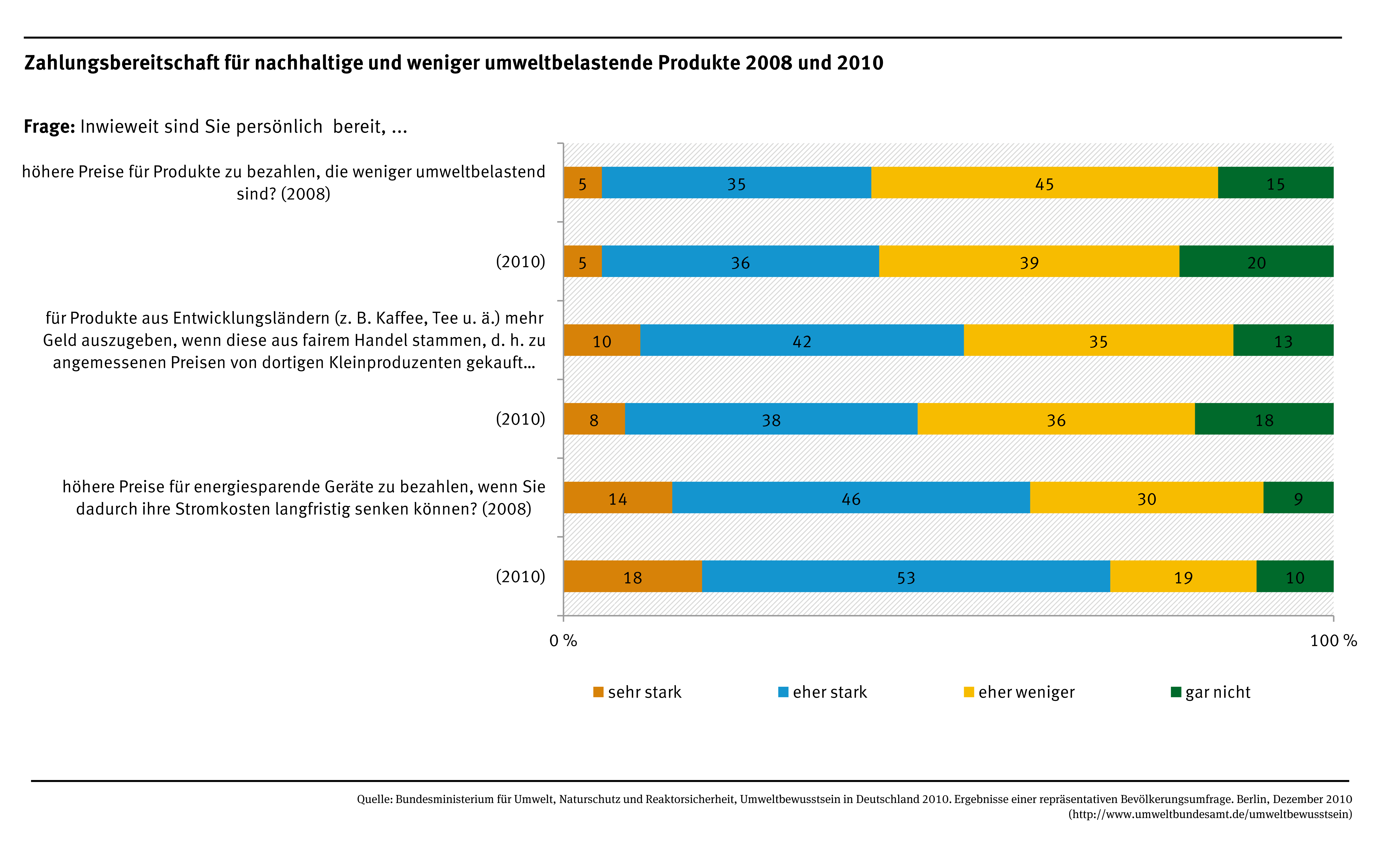 Zahlungsbereitschaft für nachhaltige und weniger umweltbelastende Produkte 2008 und 2010