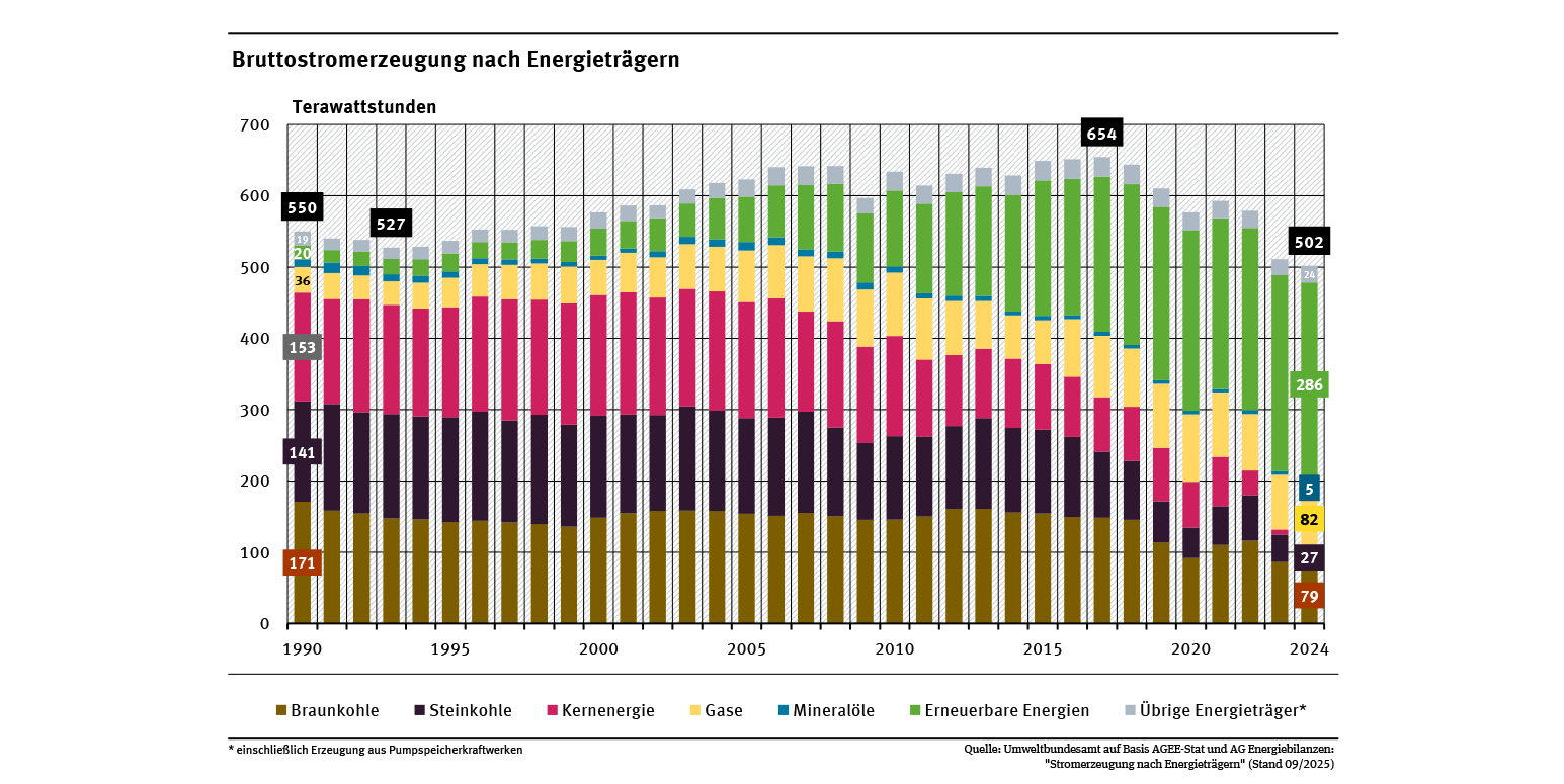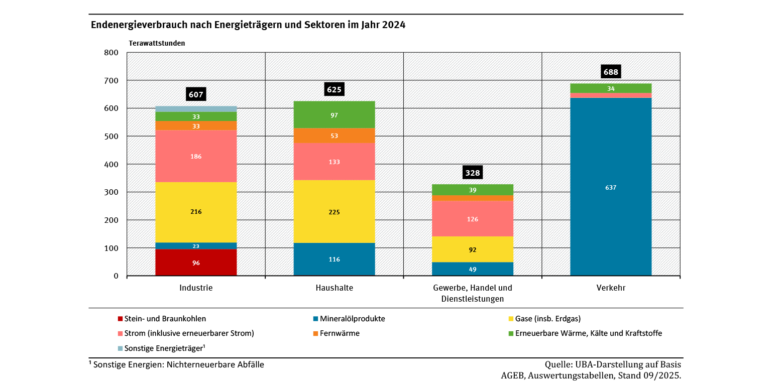 Endenergieverbrauch nach Energieträgern und Sektoren im Jahr 2024