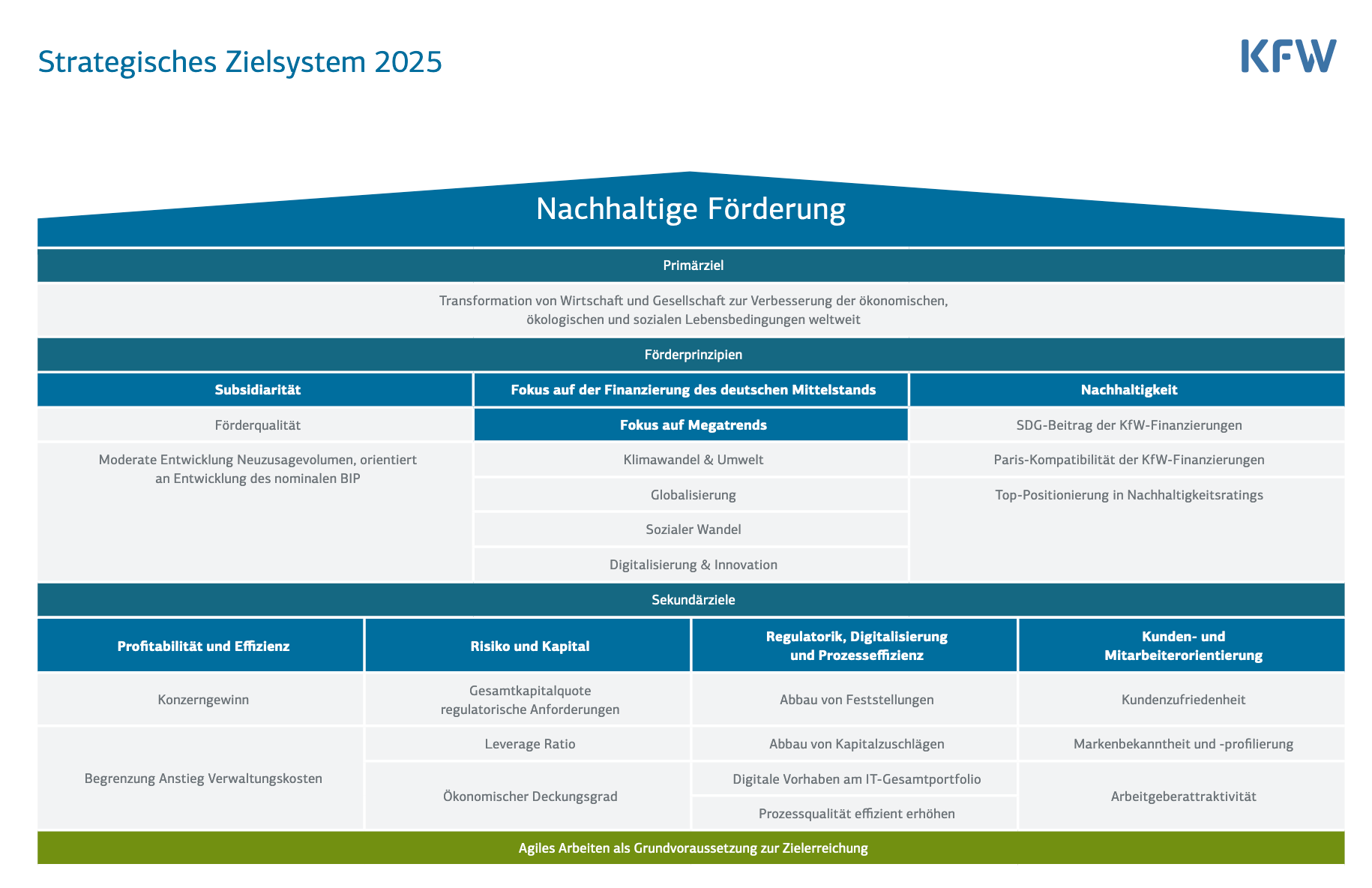 Tabellengrafik, die zur nachhaltigen Förderung hinzielt Strategisches Zielsystem 2025 KfW
