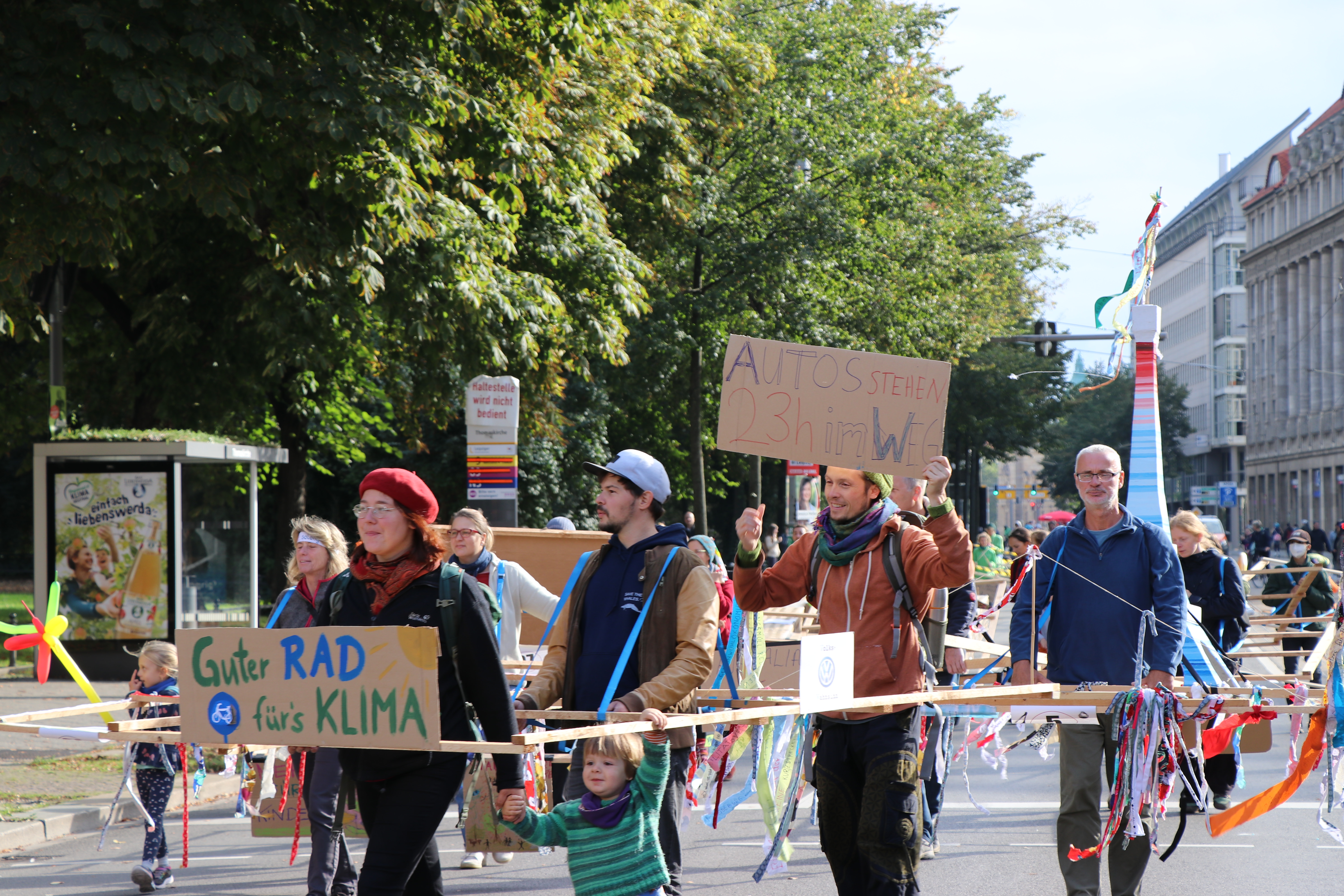 - Leipzig sperrte seinen Innenstadtring und organisierte dort zahlreiche Aktionen, u.a. die größte „Gehzeug“-Parade der Welt, die auf eine gerechte Verteilung des öffentlichen Raums aufmerksam machte.