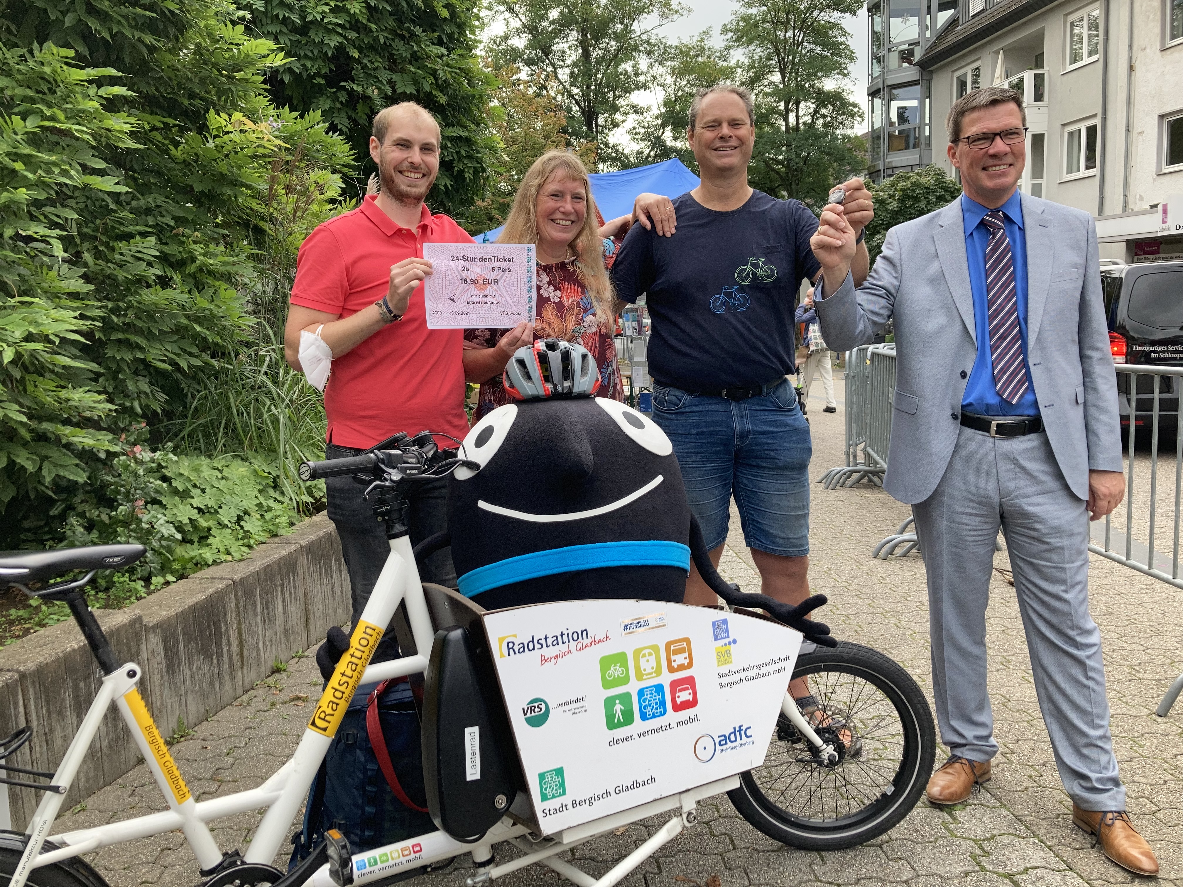 - Mit der Aktion „Lappen los“ wurde im Rheinisch-Bergischen Kreis die EMW feierlich eröffnet: Zwei Haushalte aus Bergisch Gladbach bekamen für eine Woche kostenlos ein E-Lastenrad und Tickets für Bus und Bahn im Tausch gegen ihre Autoschlüssel. Sie dokumentierten ihre täglichen Erfahrungen in einem Online-Blog.