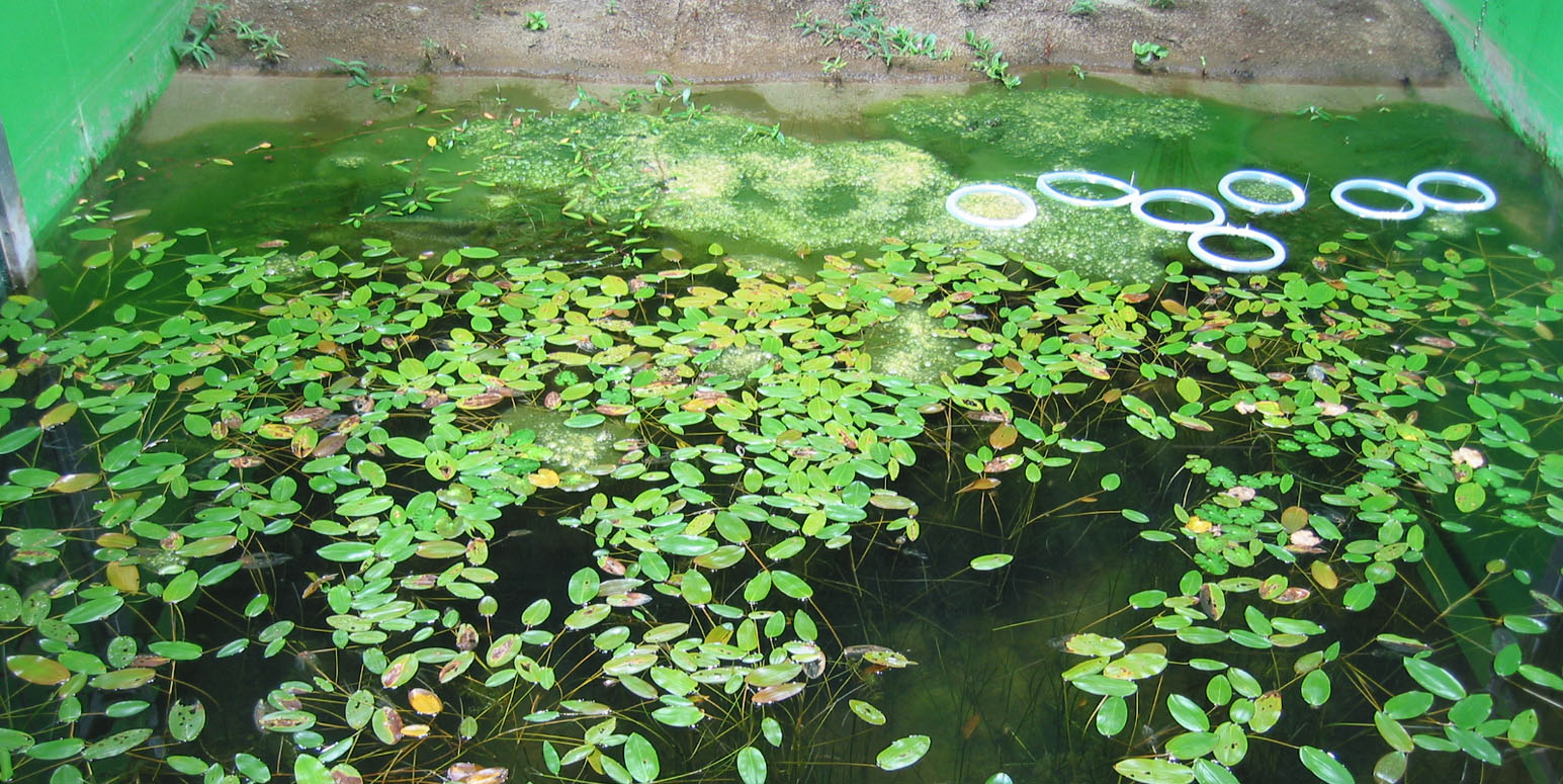 Control pond (19.9.2003) with strong Pondweed and Fadenalgenentwicklung