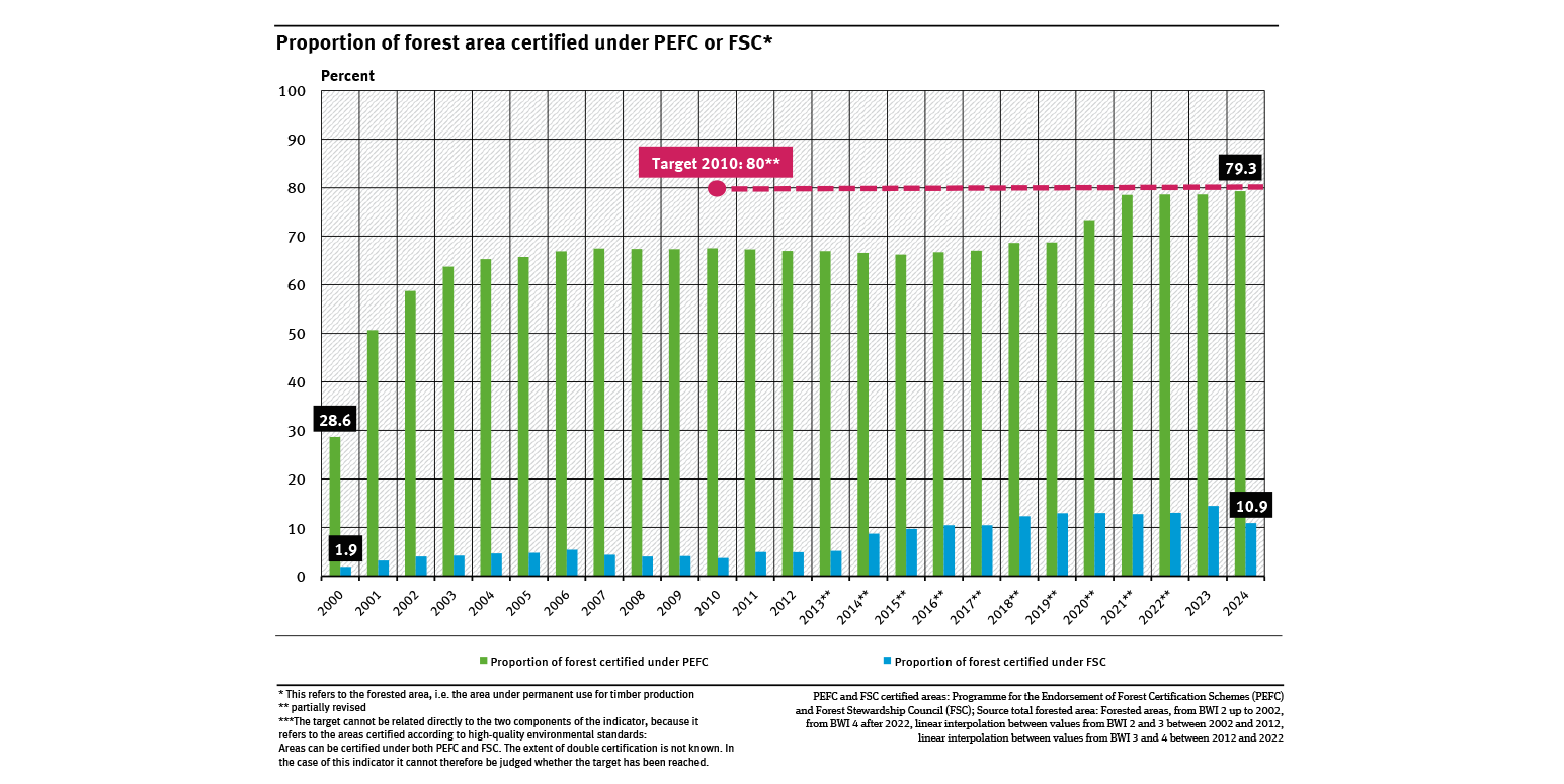 Proportion of forest area certified under PEFC or FSC