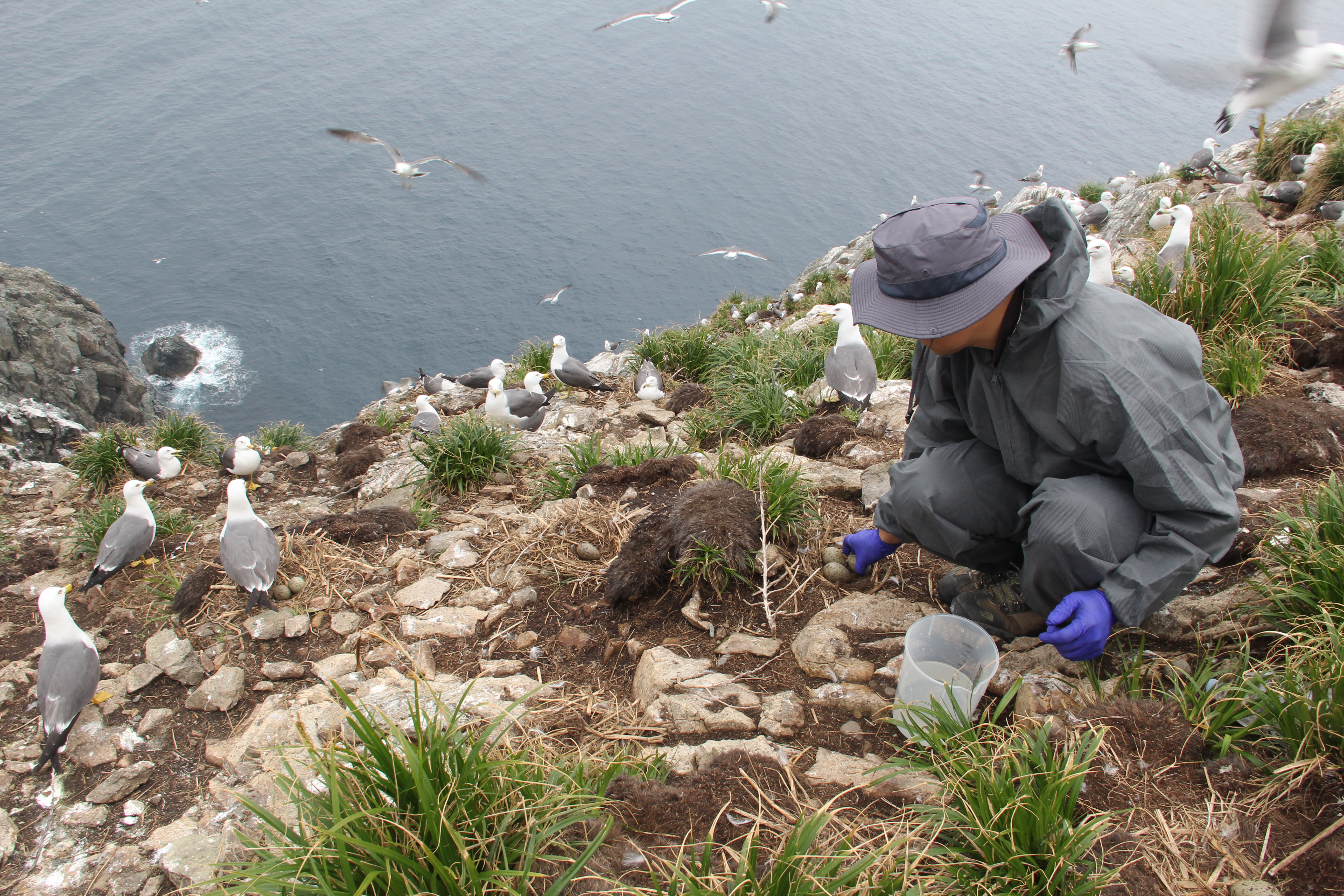 Sampling eggs of Black-tailed Gull in South Korea