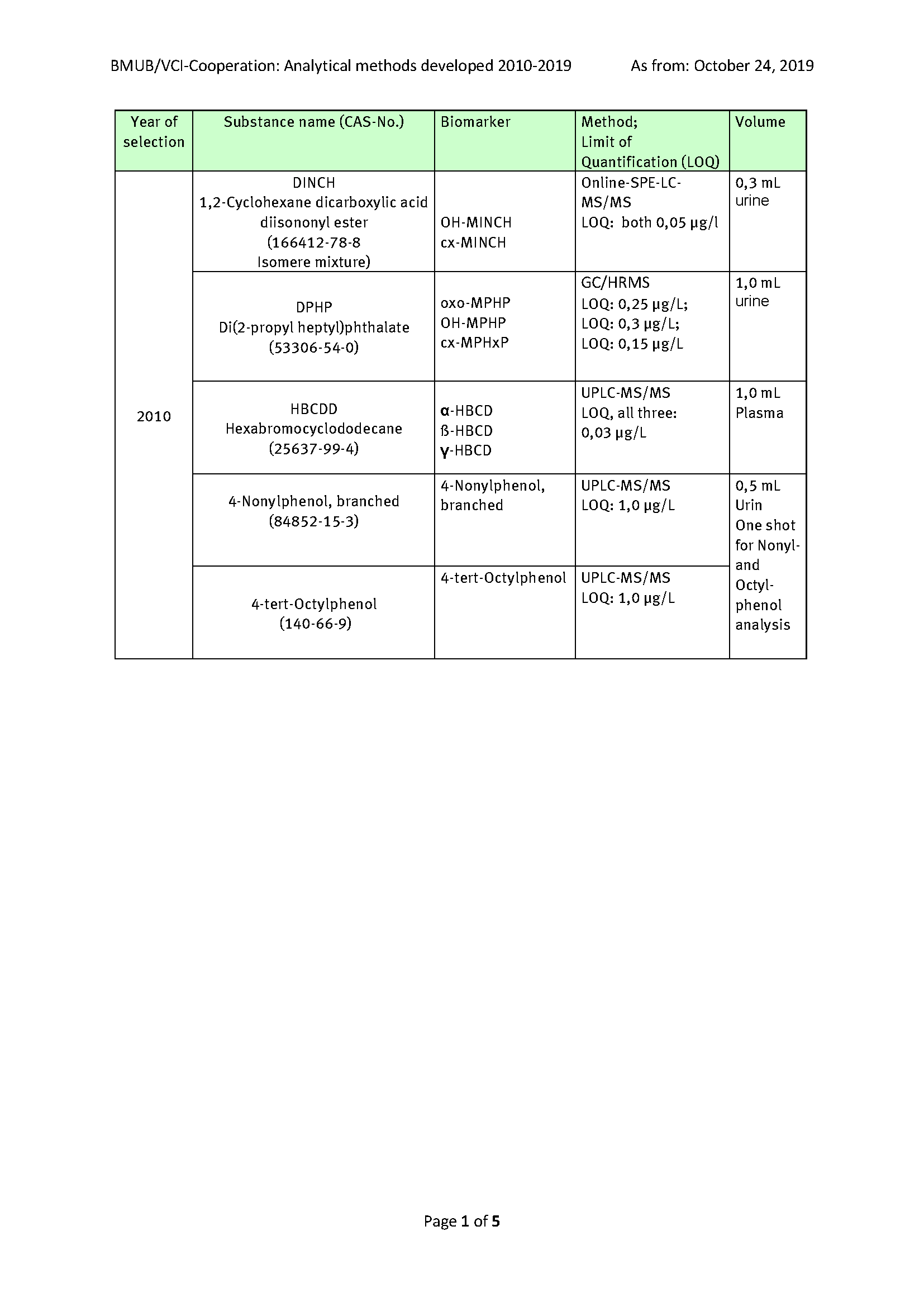 Table Developed analysis methods p.1