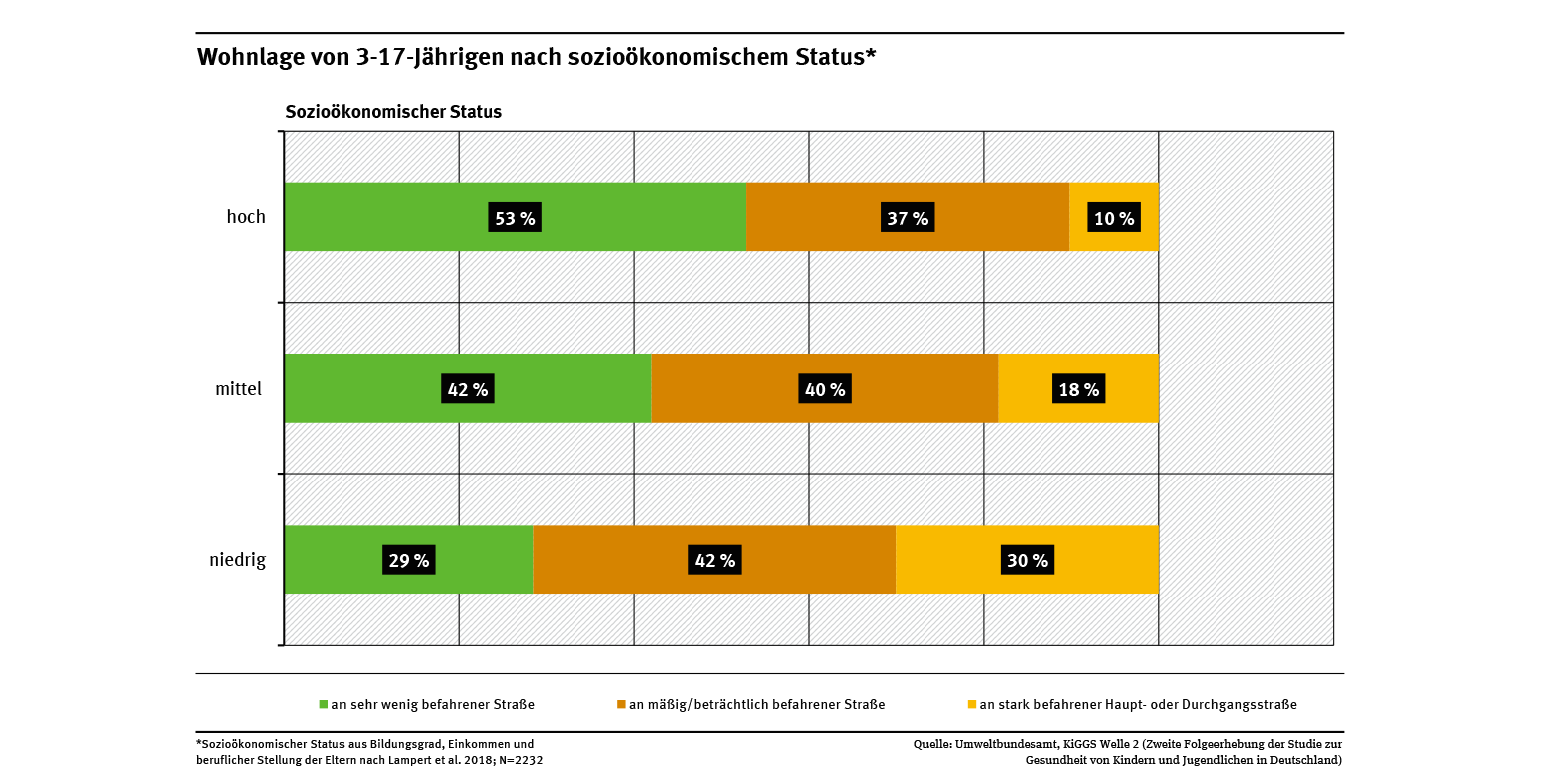 Bildung, Einkommen und Faktoren wie die berufliche Stellung beeinflussen die Wohnbedingungen und Lebensstile sowie die damit verbundenen Gesundheitsrisiken der Menschen. Das belegen sozial- und umweltepidemiologische Untersuchungen wie die Deutsche Umweltstudie zur Gesundheit (GerES), die das Umweltbundesamt seit dem Jahr 1985 durchführt.
