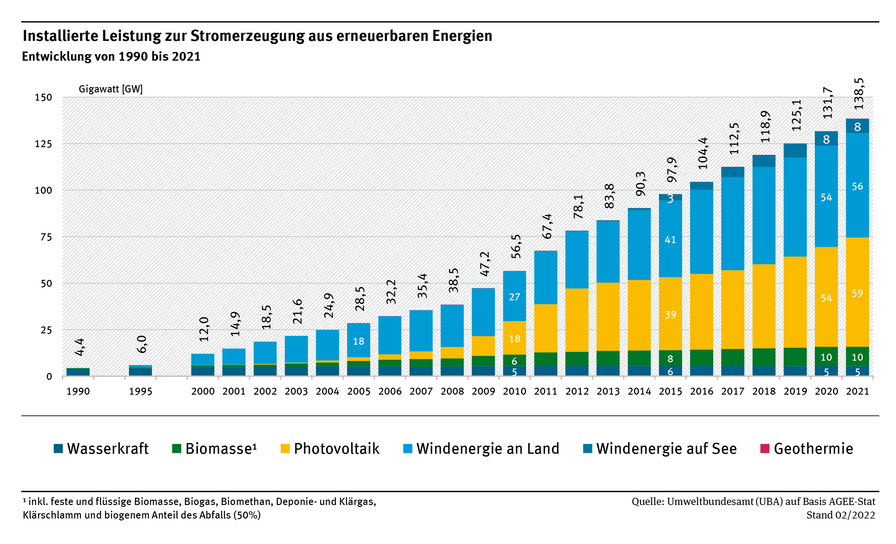 These and other data were published today in the background paper on renewable energy in Germany [Erneuerbare Energien in Deutschland – Daten zur Entwicklung im Jahr 2021] by the Working Group on Renewable Energy Statistics (AGEE-Stat). Initial data available on the use of renewable energies in the electricity, heat and transport sectors are supplemented by calculations of the associated avoided emissions and economic effects.