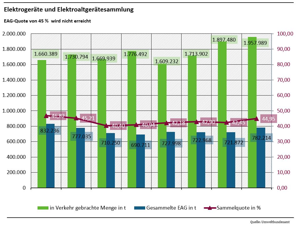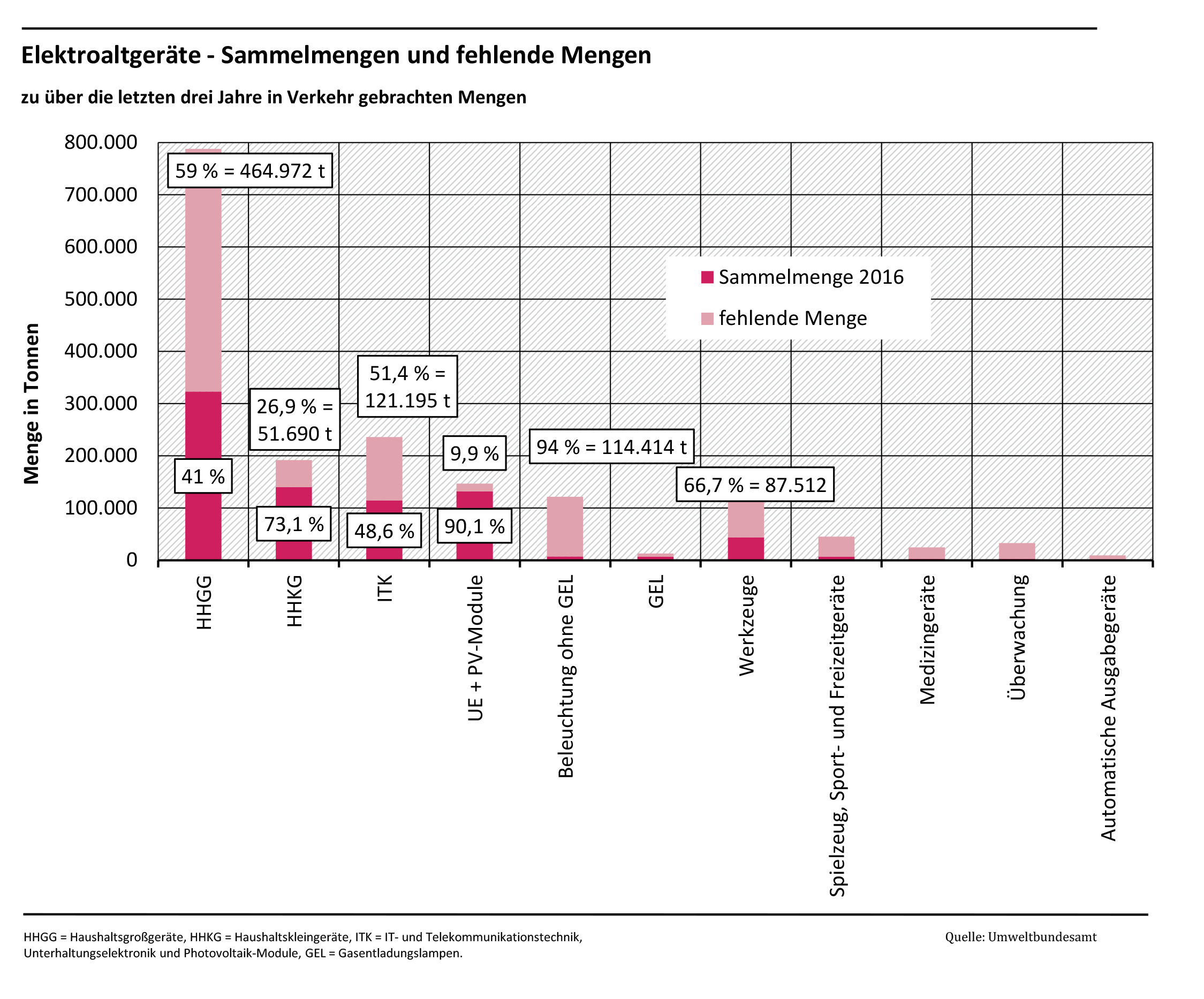 There is little chance of an increase in the collection amounts or targets for 2017. In consideration of the minimum collection target of 65 percent which goes into effect in 2019, it is estimated that about 350,000 tonnes of WEEE are lacking to reach the collection target.