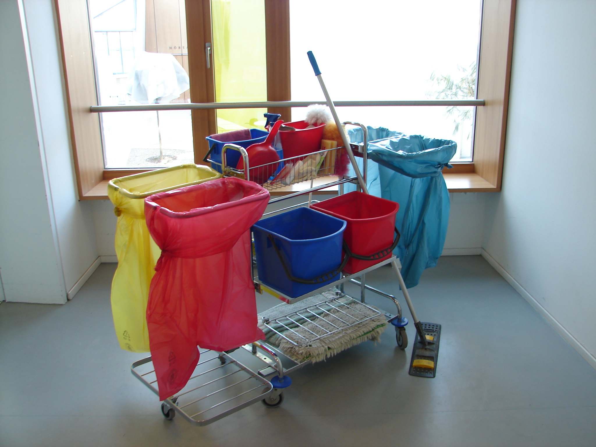 Wagen mit Reinigungsmitteln und -zubehör