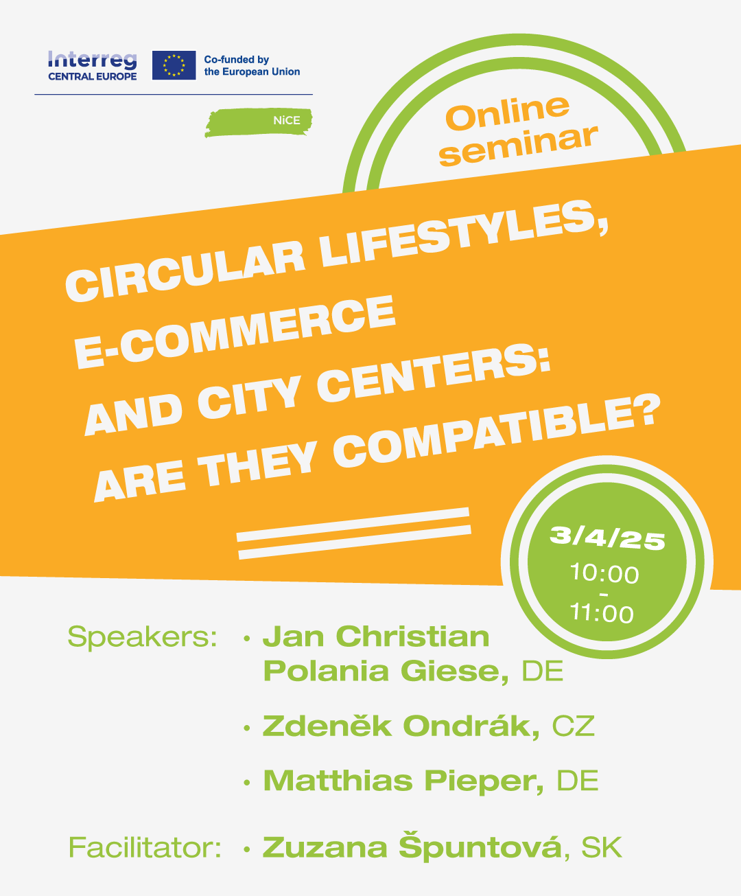 Register here! https://www.interreg-central.eu/event/nice-online-seminar-4-circular-lifestyles-e-commerce-and-city-centers-are-they-compatible/