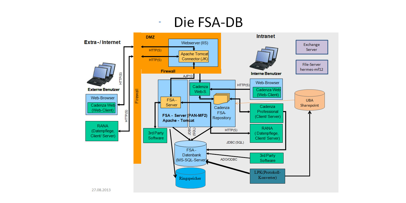 The database user program is designed in modular, multilayered architecture based on J2EE Java program. It can be used independently from the system software and is also available via the internet. The components designed for the FSA-DB have preferably been developed using open source software.