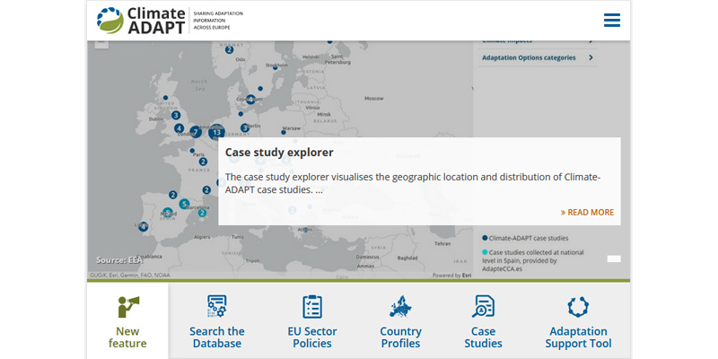 The European climate adaptation platform Climate-ADAPT supports adaptation to climate change in Europe by providing comprehensive data and information on climate change. A search and filter function helps to find suitable, quality-checked information. The platform provides information on the following topics: