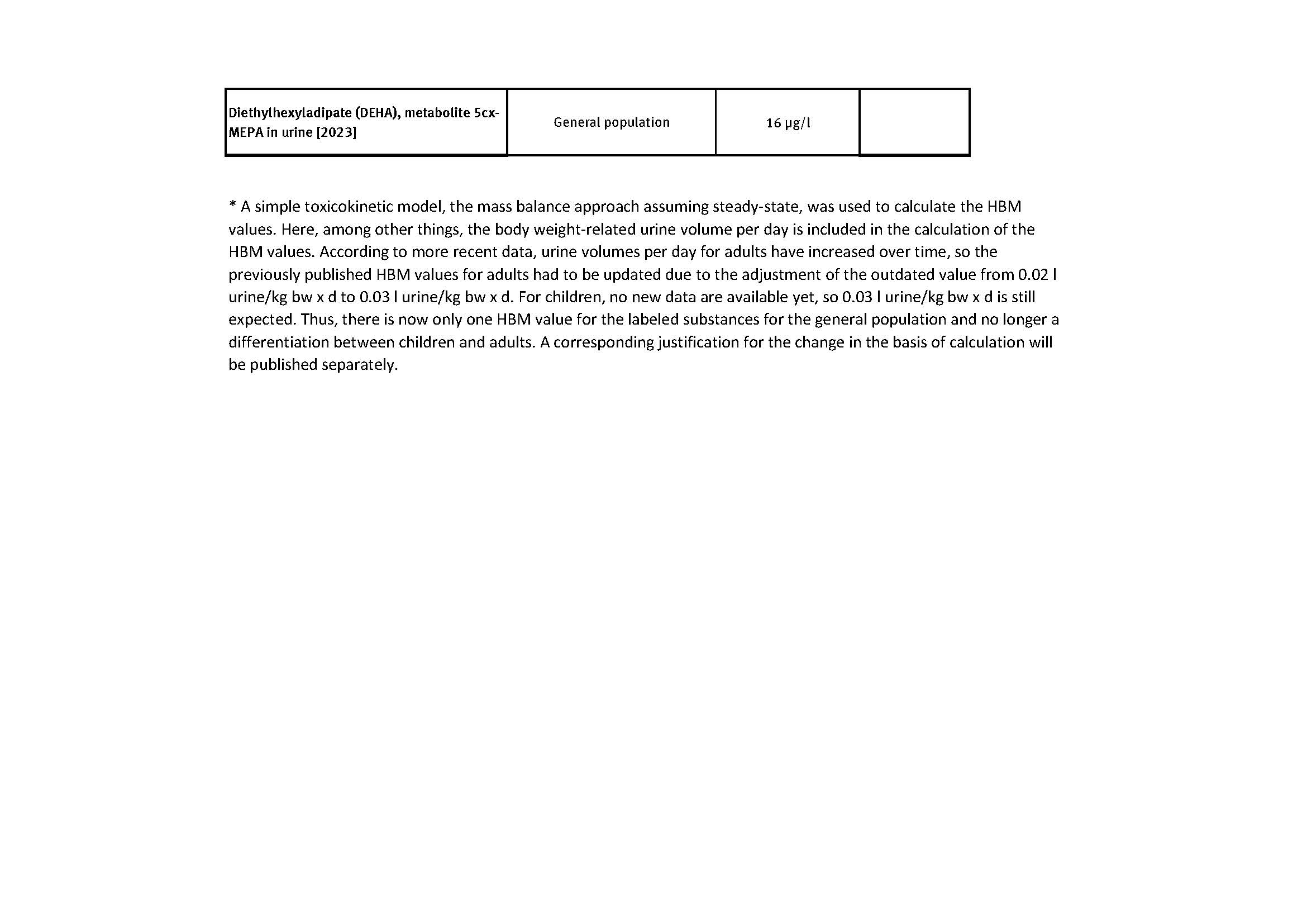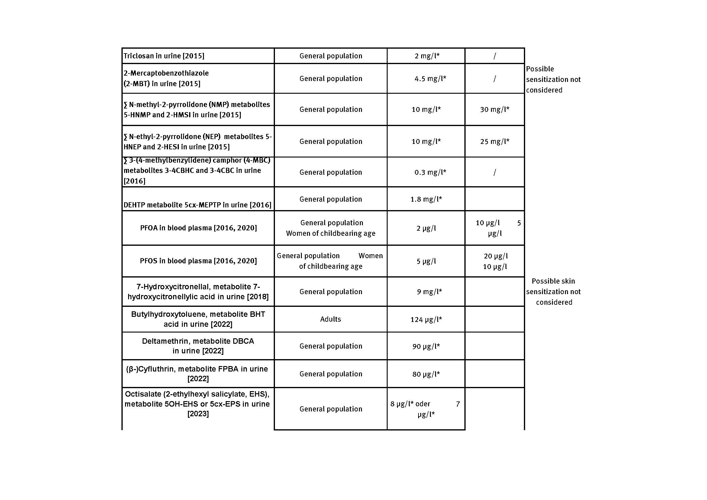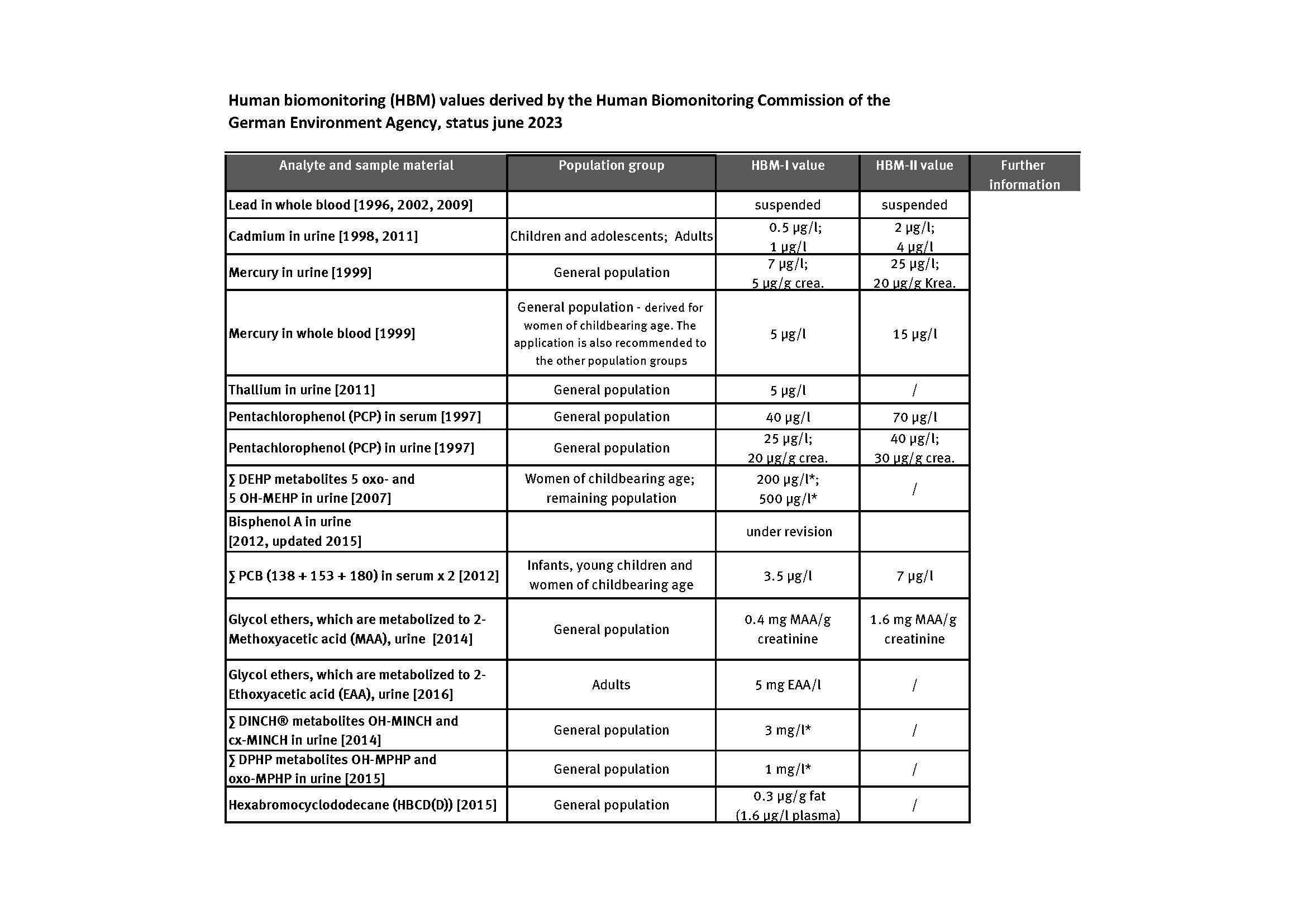 Current Human Biomonitoring (HBM) values, page 1 Source: UmweltbundesamtHBM values as PDF