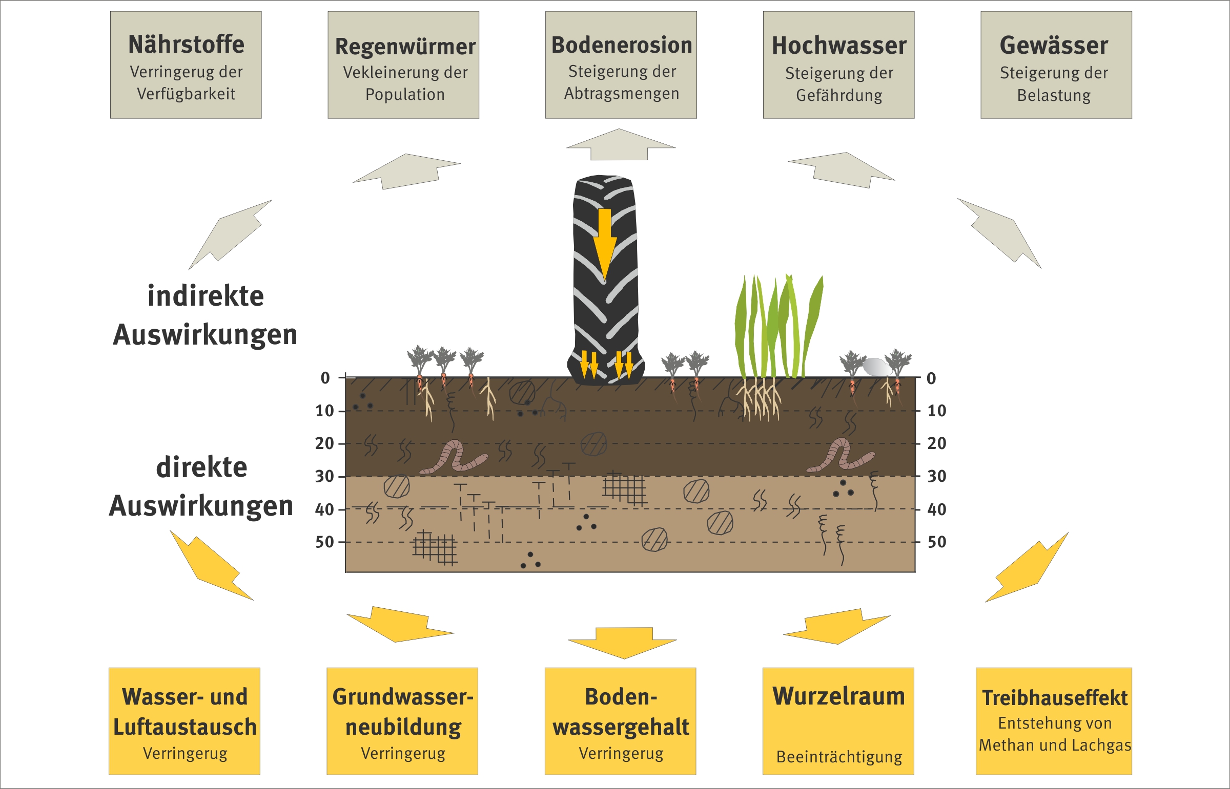 Apart from merely technical measures, farmers can also optimize their work processes through measures aimed at reducing wheeled-equipment use frequency and the amount of surface area on which such equipment is driven, via the following measures: