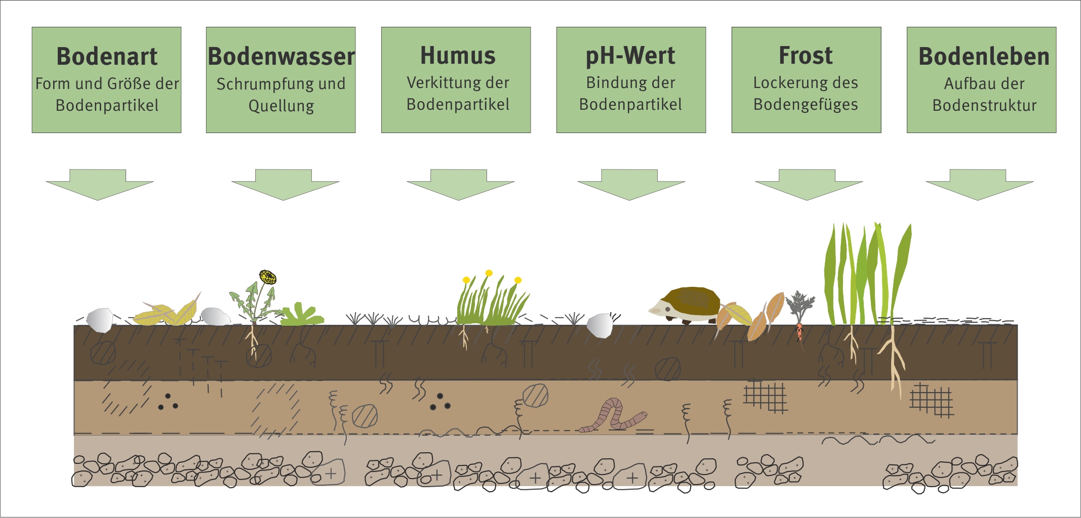 Construction also contributes to soil compaction, in that the construction process per se often involves extensive site operations. This can be avoided by implementing suitable measures, particularly for farmland, which is often used for wind farms, as well as for access road construction and property development operations. Apart from the relevant technical options, it is above all essential that organizational measures be taken for construction roadway plate planning that allow for optimal soil stewardship. The following measures come into play in this regard: