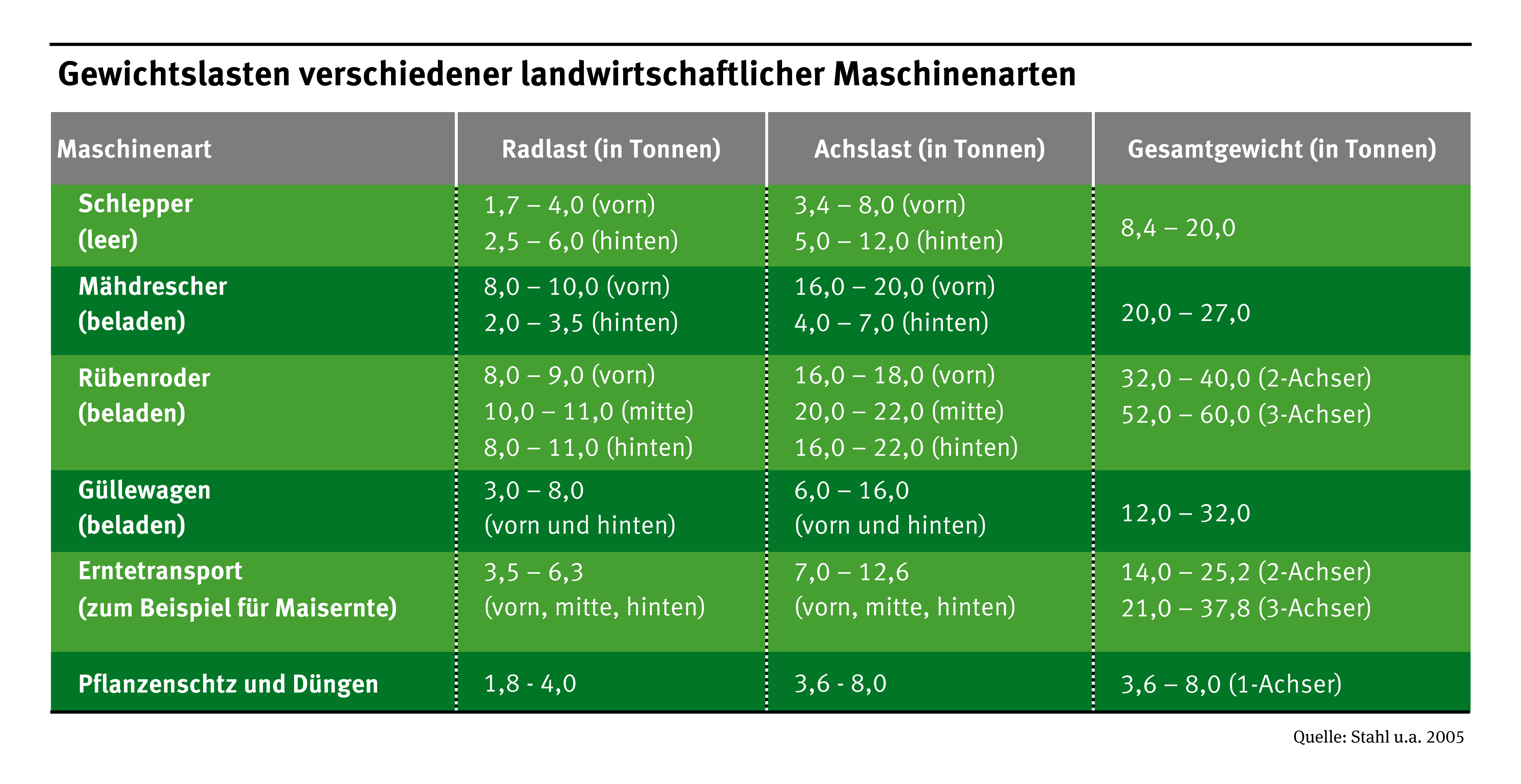 In the interest of protecting the soil and particularly the topsoil, the pressure exerted on it by farm machinery can be reduced through the following measures: