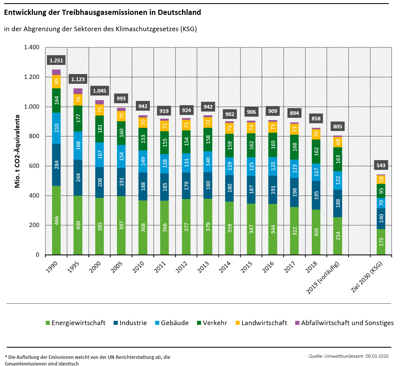 Entwicklung der Treibhausgasemissionen in Deutschland 2019