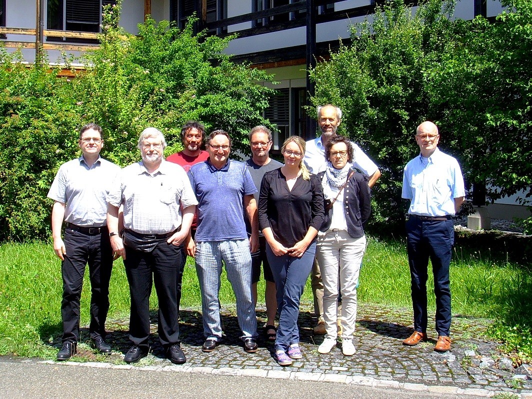 Die Teilnehmer des erweiterten QA/SAC Workshop zu Gast beim KIT / IMK-IFU in Garmisch-Partenkirchen am 27.06.2017 von l. n. r.: Dr. H. Gerwig (UBA), Dr. F. Rohrer (FZJ), Dr. S. Thiel (KIT, IMK/IFU), Dr. R. Steinbrecher (KIT, IMK/IFU), Prof. Dr. A. Wiedensohler (TROPOS), M. Glor (UFS), Dr. C. Plass-Dülmer (DWD), Dr. S. Schüttauf (TROPOS), Dr. H. Smit (FZJ).