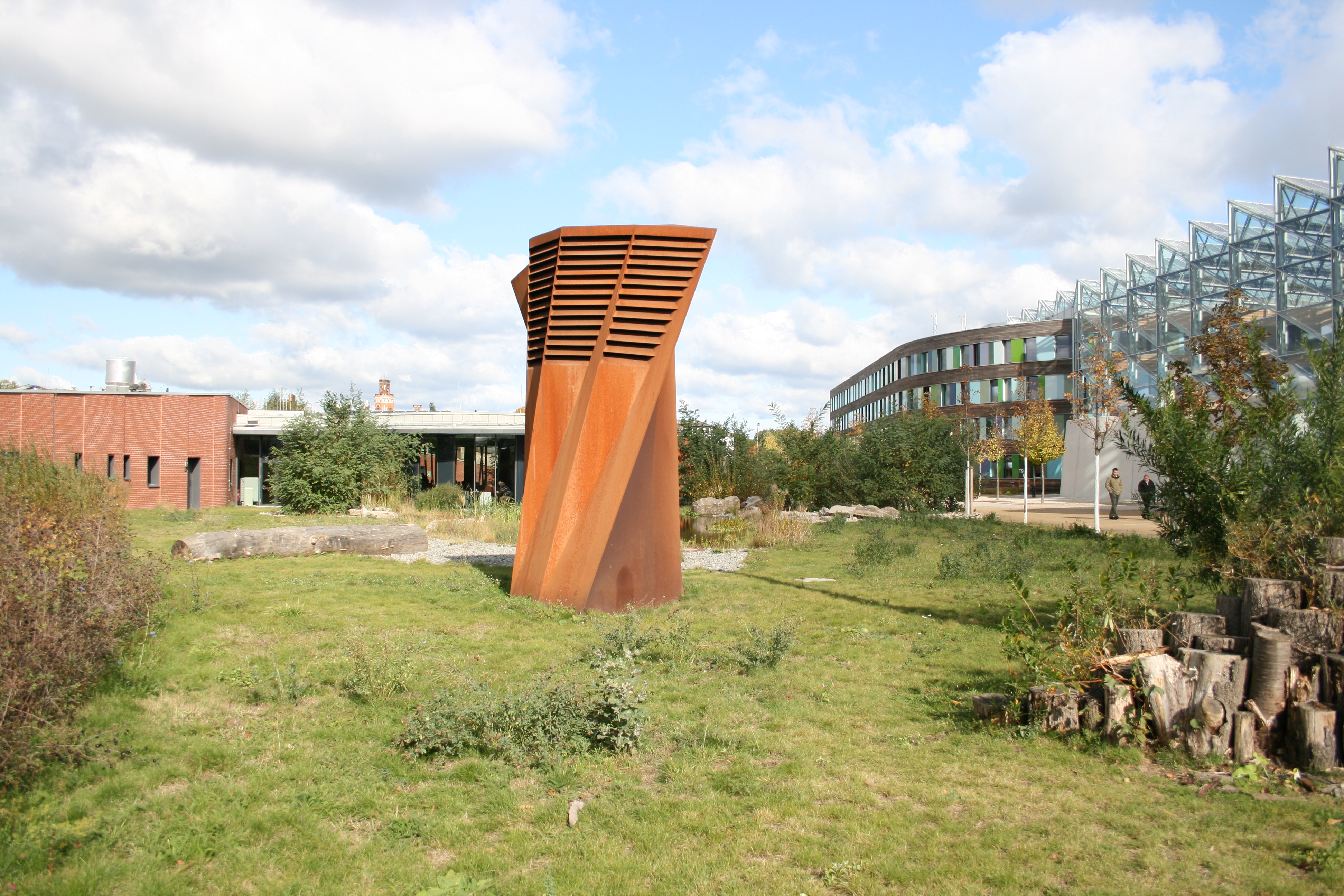 Die Stelen in Dessau interpretieren in ihrer Dynamik der Formen universale Rhythmen und Strukturen des organischen Wachstums. Das Spiel von Licht und Schatten, sowie der natürlichen Stahlfarben auf den Facettierungen der Plastiken stellt Bezüge zu Natur als auch zur alten Industriearchitektur her. Dabei wirken sie gleichzeitig monolithisch wie zeichenhaft, konkret und abstrakt; sie bewegen sich im Spannungsfeld zwischen freier Skulptur und angewandter Formfindung.