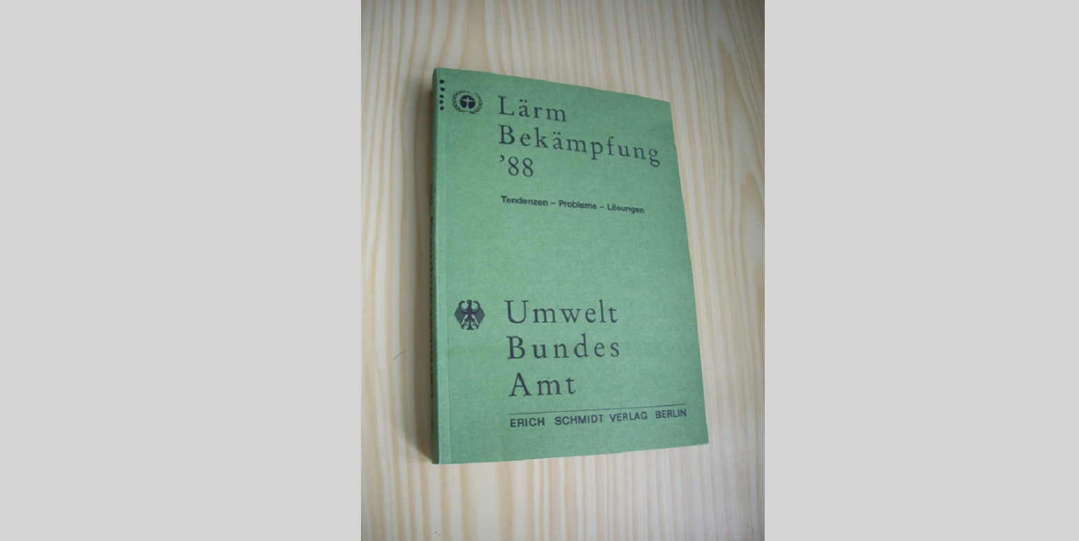 Grün eingebundener Bericht mit dem Logo des UBA und dem Titel „Lärmbekämpfung 1988: Tendenzen – Probleme – Lösungen“ Der UBA-Bericht „Lärmbekämpfung 1988: Tendenzen – Probleme – Lösungen“