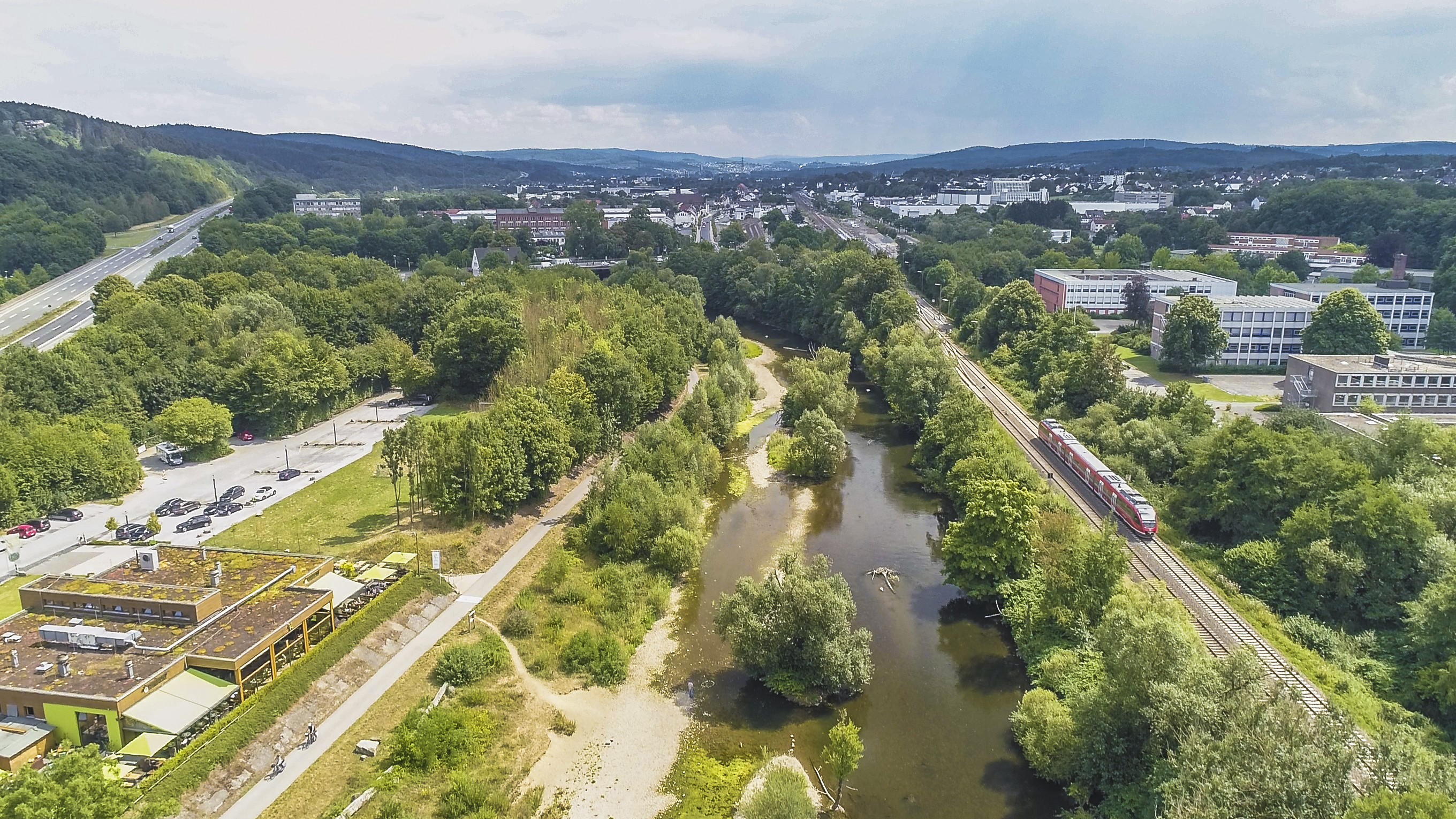 In Siedlungsbereichen sind bauliche Maßnahmen der Gewässerentwicklungen aus Platzgründen oftmals nur eingeschränkt möglich. Eine Verbesserung der Durchgängigkeit und von Sohle und Ufer ist jedoch in den meisten Fällen umsetzbar.