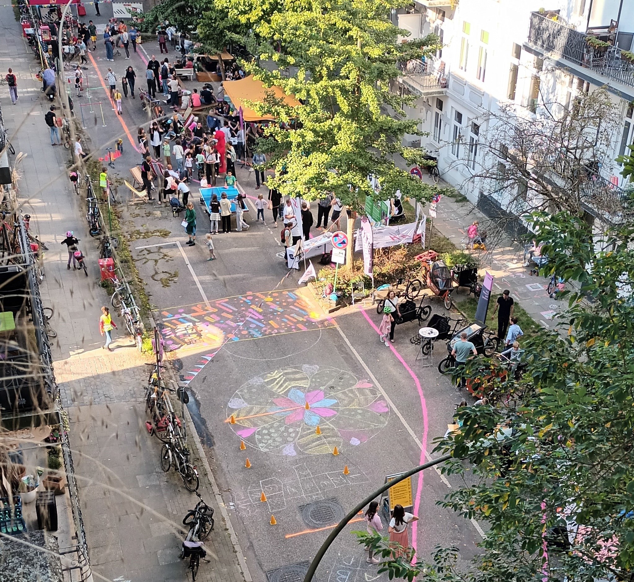 In der Kategorie „Jahresthema“ hat sich das Foto aus Hamburg gegen die Finalisten aus Pfinztal und Chemnitz durchgesetzt. Es zeigt sehr schön die vielfältigen Nutzungsmöglichkeiten des Straßenraums auf, viele Menschen diesen Raum anders nutzen und es sofort Lust macht, direkt dort dabei zu sein.