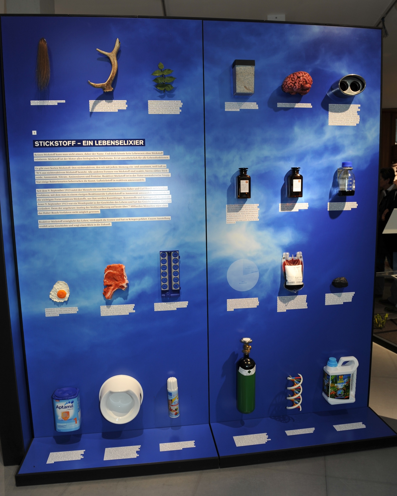 Die Ausstellung erzählt die Geschichte des Stickstoffs mit vielen einzigartigen Exponaten. Sie erläutert die biologische Bedeutung des Stickstoffs, seine ökologische Problematik, aber auch seine politische Relevanz. Mittelalterliche Ateliers der Alchemisten und des Salpeterers werden reizvoll kontrastiert durch moderne Hochtechnologie. Die Schau rund um den Stoff, mit dem Bomben gebaut und Äcker gedüngt werden, soll nicht trockenes Wissen vermitteln, sondern faszinieren und Neugierde wecken, etwa durch Hands-on-Exponate. Sie ist für Besucher aller Altersstufen ab acht Jahren geeignet.