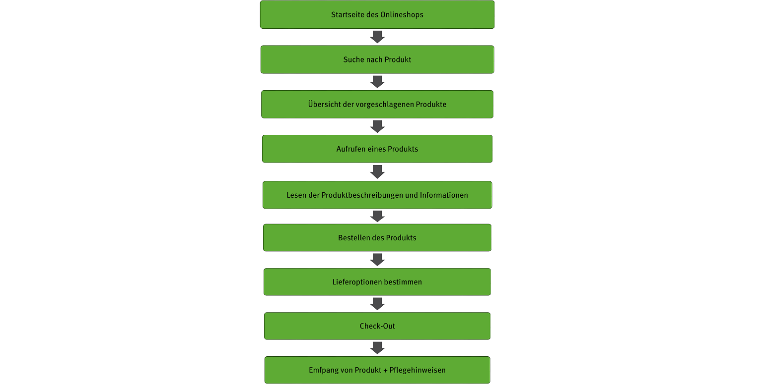 Customer Journey: Angenommener Ablauf einer Bestellung aus Sicht der Kundinnen*Kunden