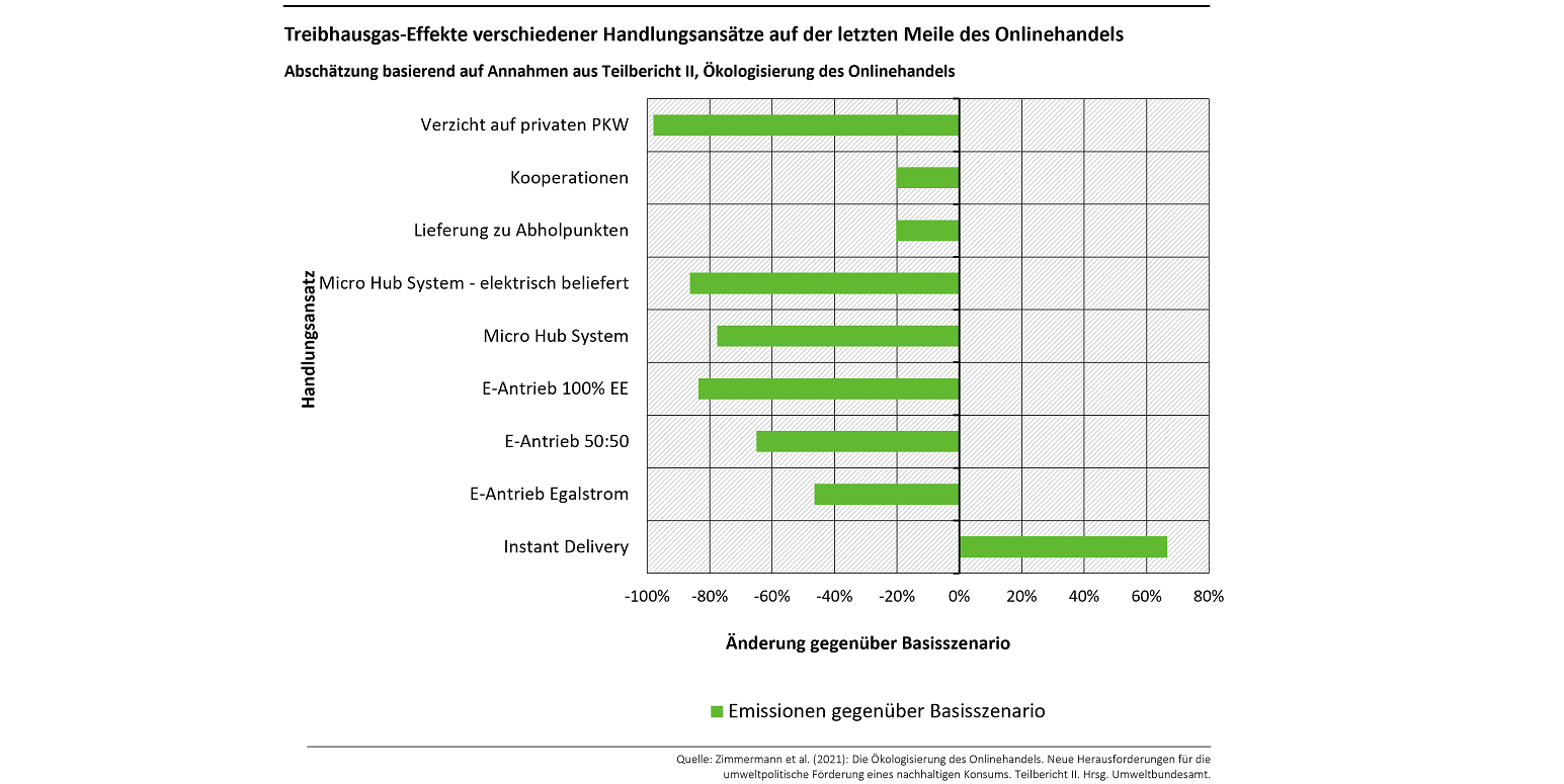 Treibhausgas-Effekte verschiedener Ansätze für die letzte Meile des Onlinehandels