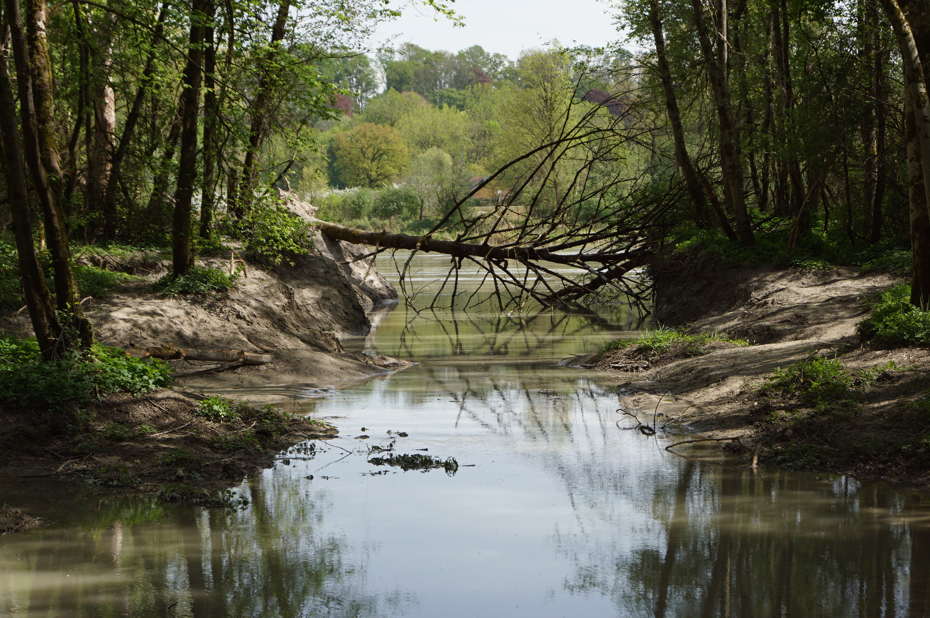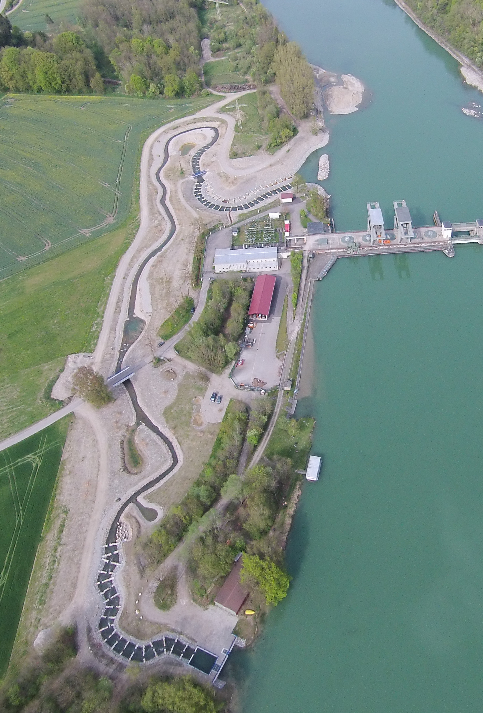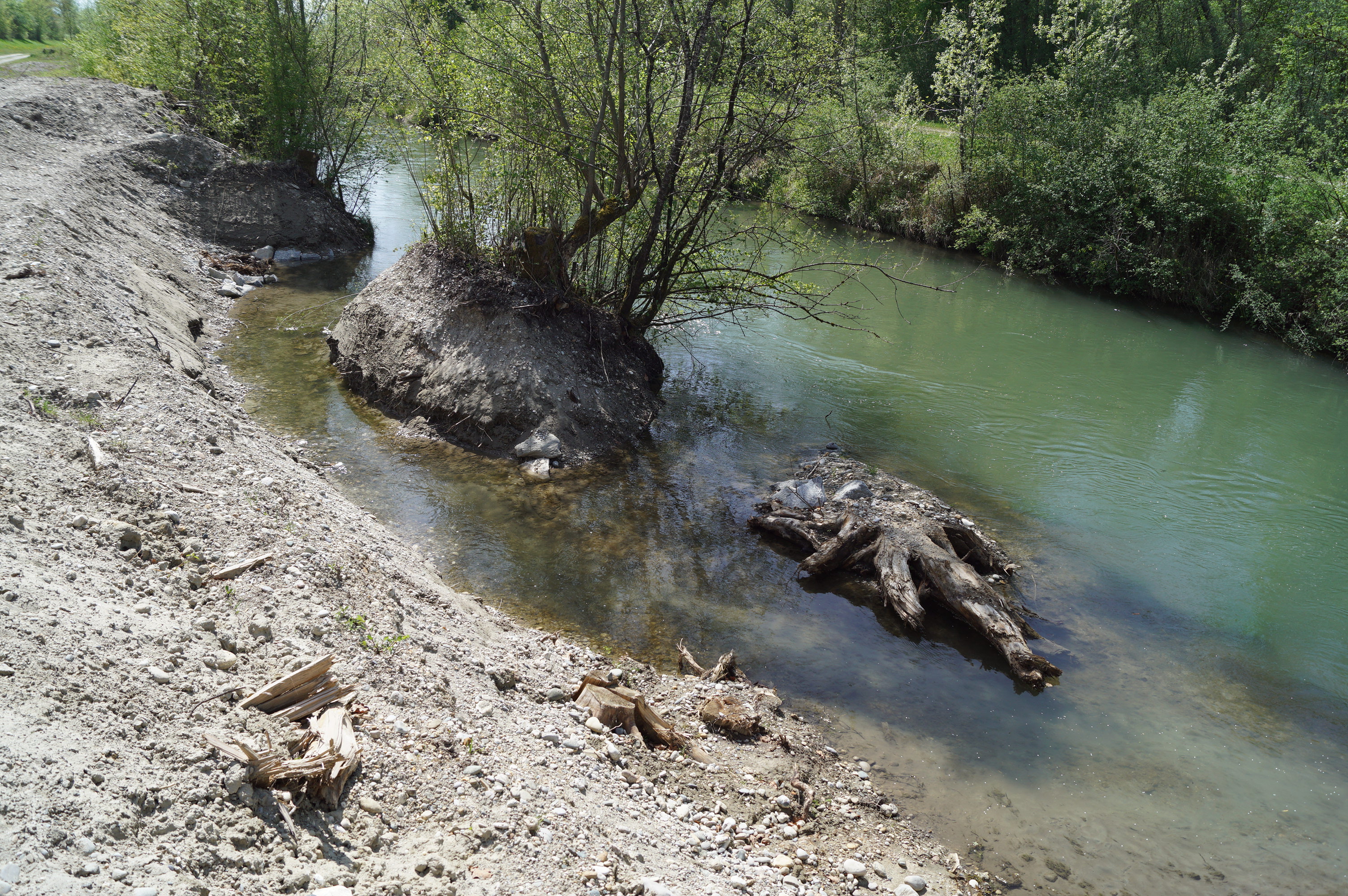 - Am Kraftwerk Perach wurde ein breites, naturnahes Umgehungsgerinne mit Kiesbett im Auwald neu angelegt.