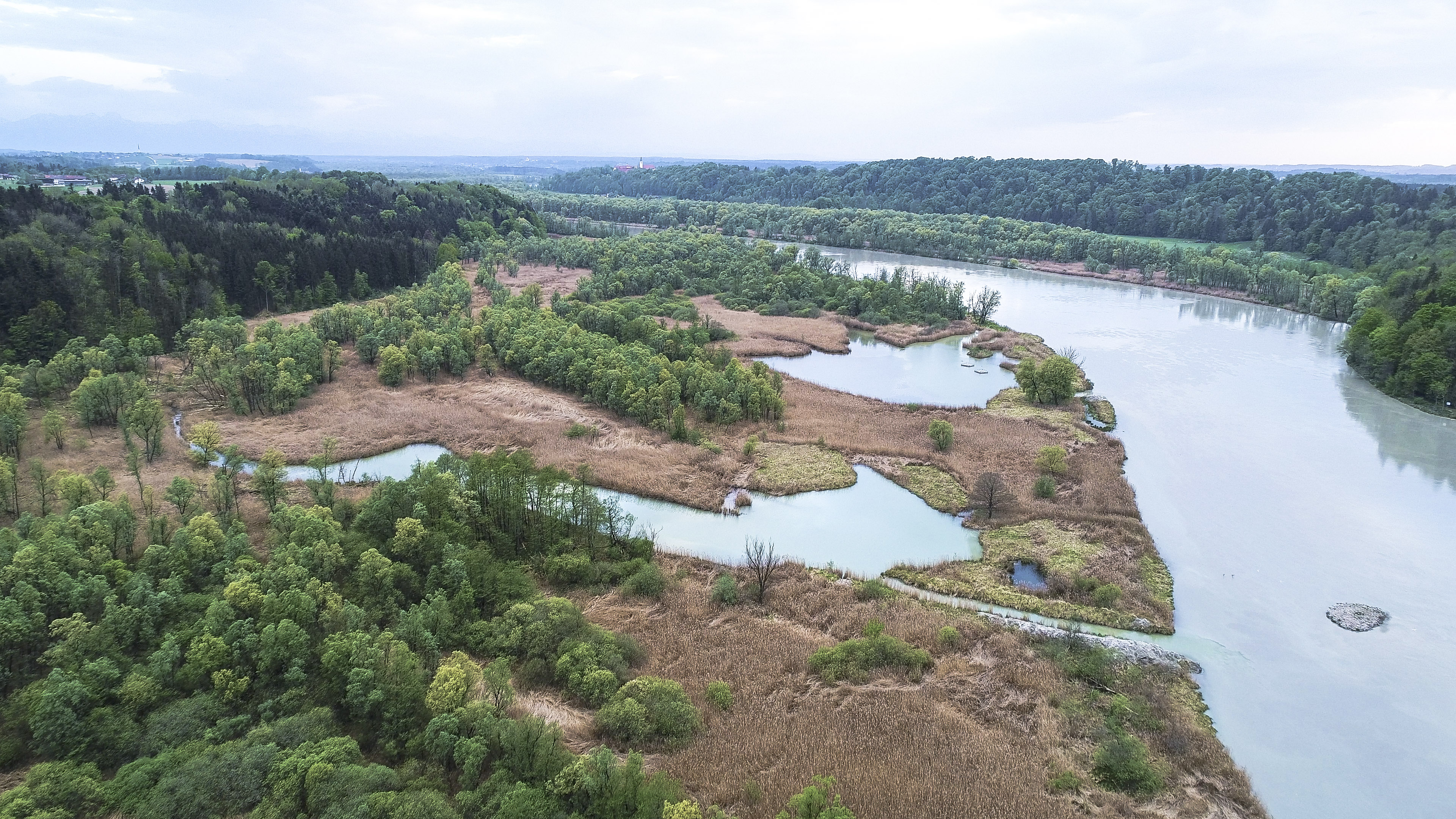 Ursprünglich war der Inn im Alpenvorland weit verzweigt. Große Abflussschwankungen und Geschiebe aus den Alpen veränderten sein Erscheinungsbild ständig. Diese Dynamik schuf eine Vielfalt an Strukturen und Lebensräumen sowohl im Gewässer als auch in den weit ausladenden Auen.