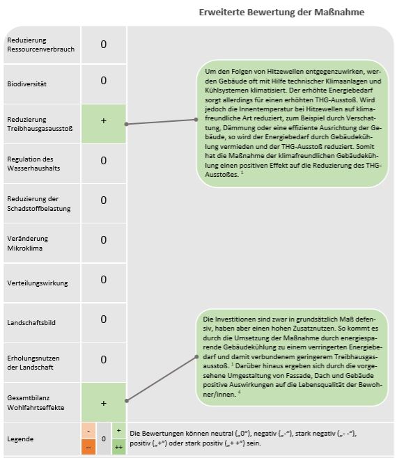 Die hier betrachtete Maßnahme zielt auf effiziente und klimafreundliche Varianten der Gebäudekühlung ab, wie zum Beispiel Verschattungen, Fassaden- und Dachdämmungen oder eine effiziente Ausrichtung der Gebäude und Fensterfronten sowie die Verwendung von wärmedämmendem Glas. Diese können eine angenehme Raumtemperatur begünstigen.