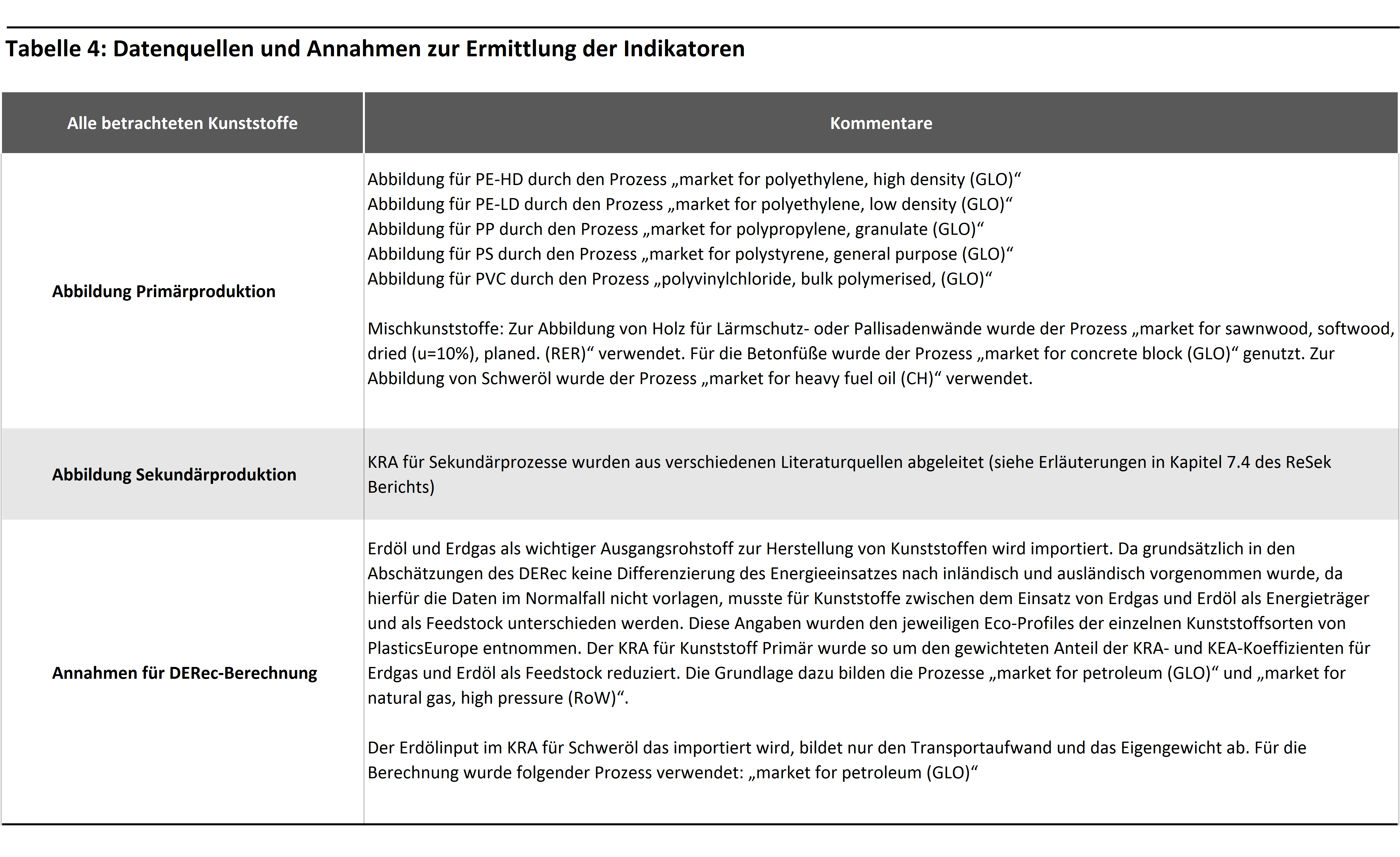 Kunststoffe Tabelle 4: Datenquellen Kunststoffe Tabelle 4: Datenquellen