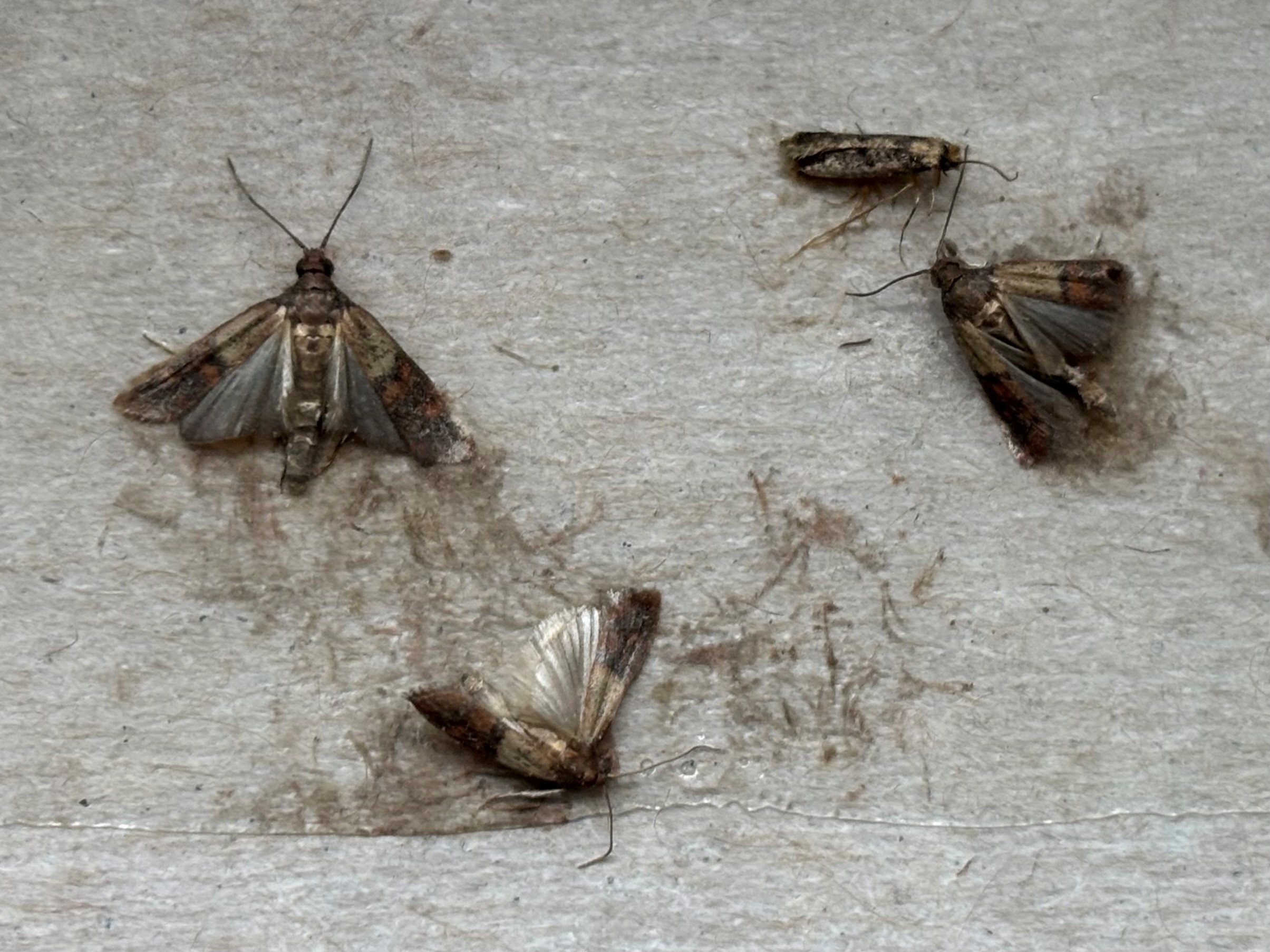 Oft werden Lebensmittelmotten erst bemerkt, wenn sich die erwachsenen Falter zur Fortpflanzung und auf der Suche nach einem geeigneten Eiablageplatz in der Wohnung bewegen. Im Gegensatz zu den Faltern sind die Larven tagaktiv. Sie spinnen ein feines weißes Gespinst, das das Nährsubstrat überdeckt und zusammenklebt.