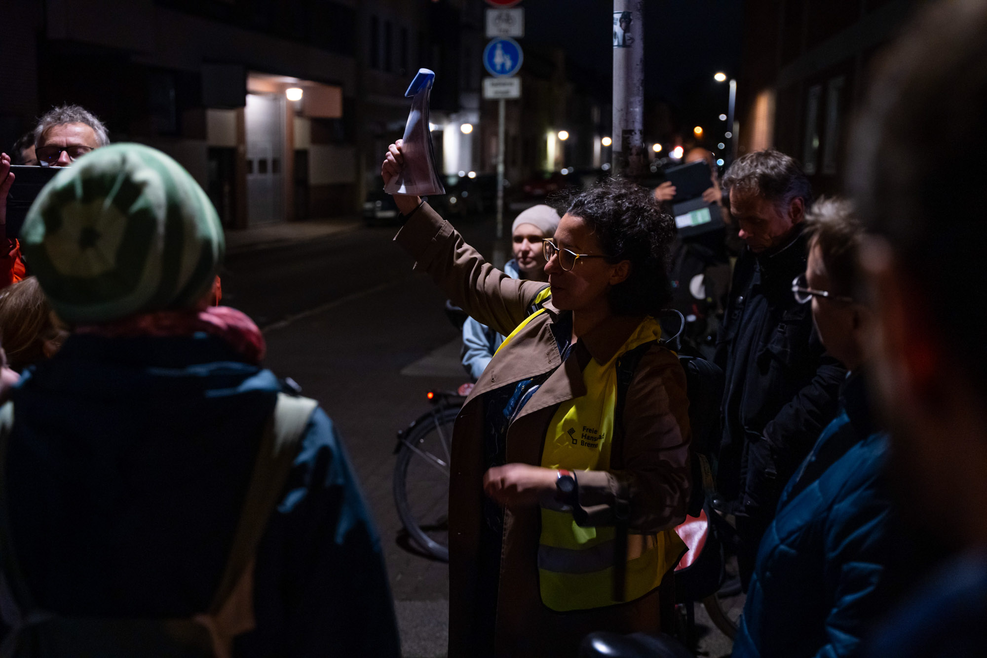 Im Anschluss führten die Bremer Gastgeber zu Fuß durch das Bremer Quartier Findorff und erläuterten die intensiven Debatten zur Neuordnung des Straßen- und Parkraums und vor allem zum Gehwegparken. Beim gemeinsamen Abendessen tauschten sich die Gäste über diesen abendlichen Einblick in die verkehrliche Situation und Konflikte dort und weitere Themen aus.