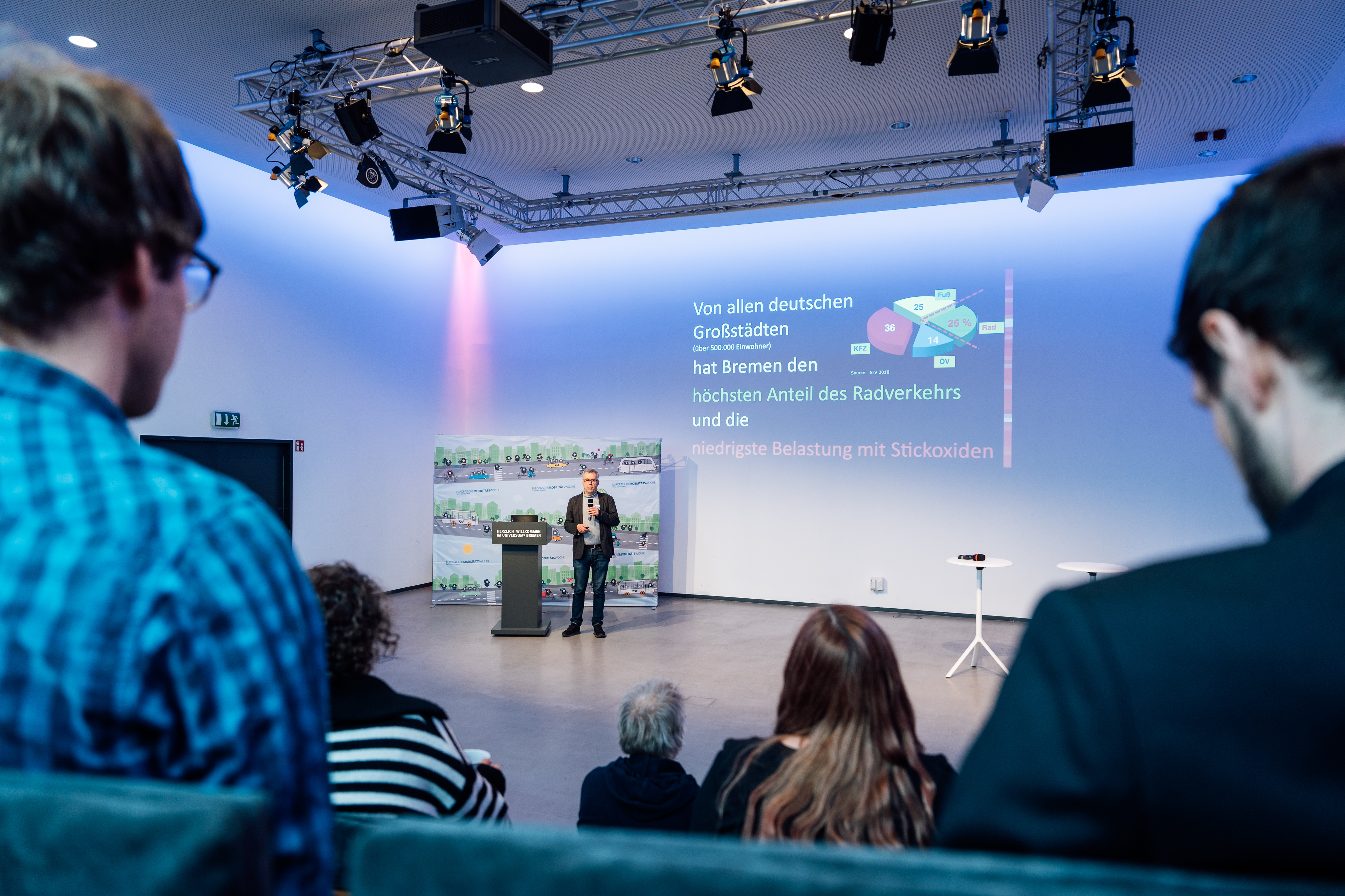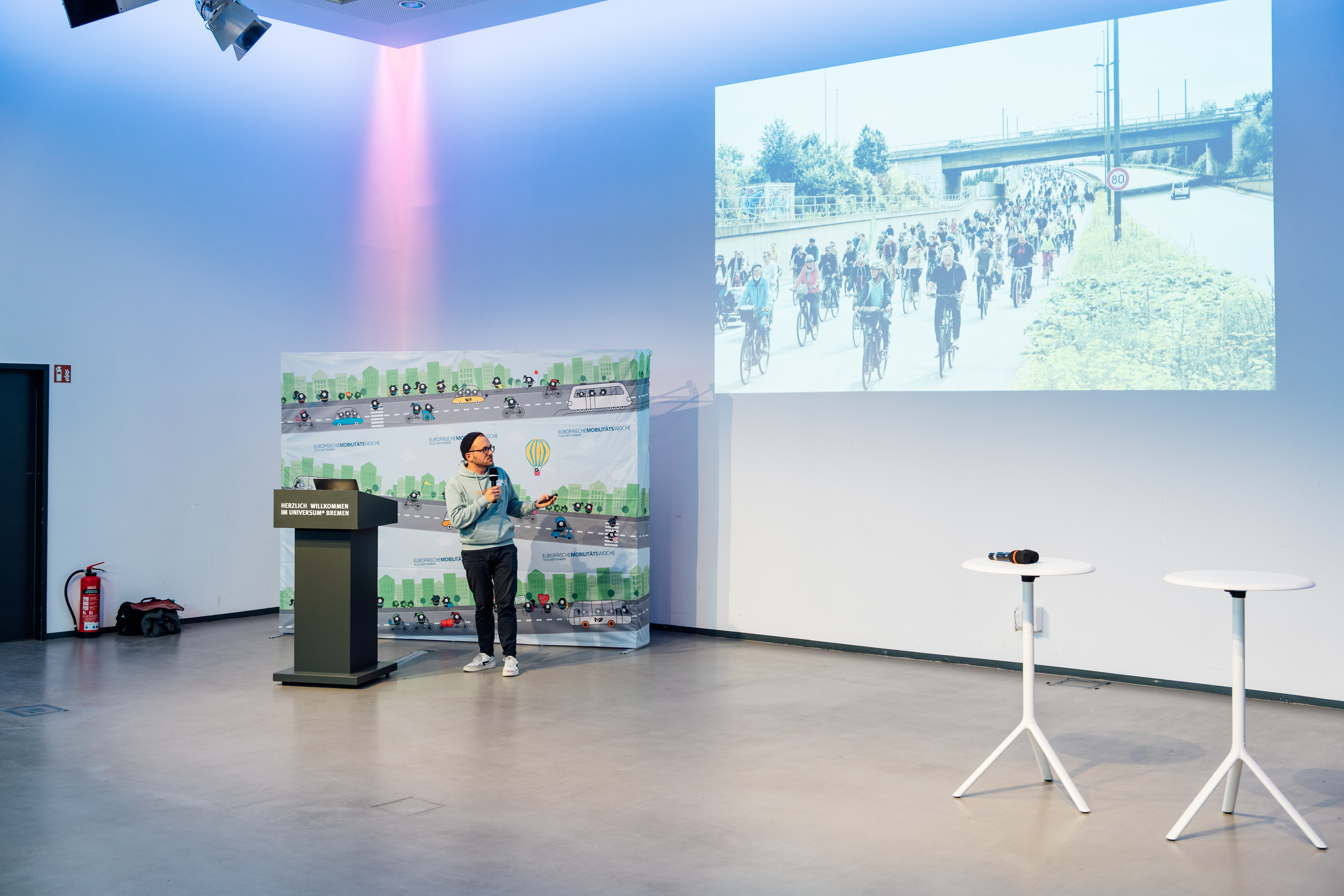 Nach der Begrüßung durch Michael Glotz-Richter, Referent Nachhaltige Mobilität bei der Freien Hansestadt Bremen, und Miriam Dross, stellvertretende EMW-Koordinatorin für Deutschland und Fachgebietsleiterin im Umweltbundesamt, und einem ersten lockeren Warm Up zum Ankommen und gegenseitigen Kennenlernen stellte sich die Gastgeberstadt Bremen vor. Michael Glotz-Richter präsentierte Daten und Fakten, Pläne und Prozesse sowie aktuelle Konflikte und Lösungsansätze rund um das Thema Verkehr und nachhaltige Mobilität in Bremen. Filip Wätjen als Vertreter vom autofreien StadTraum Bremen e.V., dem Verein, der die EMW in Bremen maßgeblich organisiert, schloss mit seinem Bericht von der diesjährigen EMW in der Hansestadt an und zeigte viele Impressionen. In Bremen stand der ganze Monat September durch eine Vielzahl an Veranstaltungen im Zeichen der Mobilitätswende und Stadtentwicklung.
