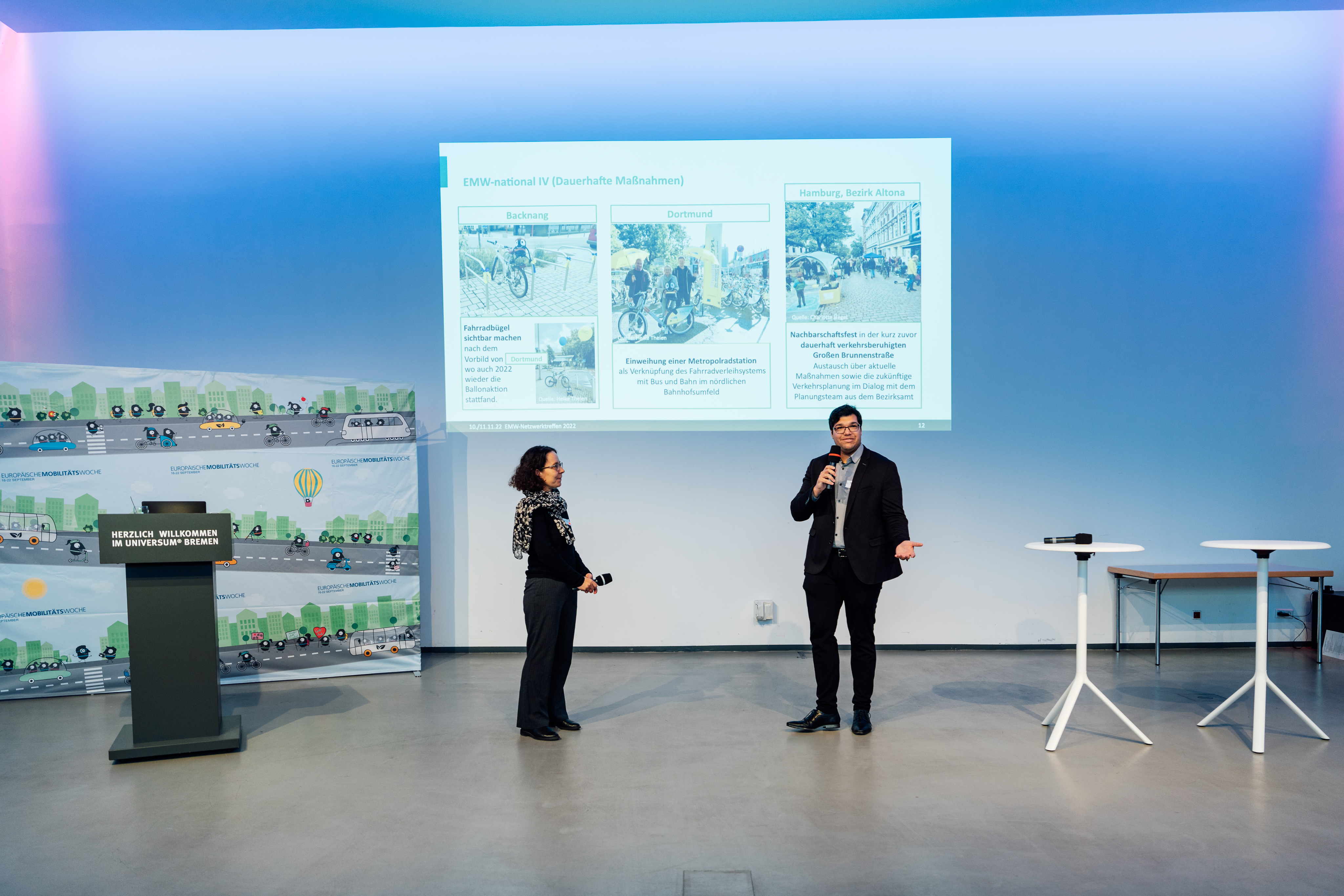 Ein großes „Familientreffen“ der seit Jahren Engagierten und eine Begegnung mit neuen Aktiven und Begeisterten: beides war das Netzwerktreffen 2022 in Bremen. Das Programm reichte vom Erfahrungsaustausch über EMW-Aktivitäten und Vorträgen im Expressformat „Pecha Kucha“, über Rollenspiele, interaktive Workshops bis hin zu Mobilitätsexkursionen und einer Aktion im Straßenraum. Das Ziel war, sich über nachhaltige Mobilität und den Weg dahin auszutauschen. Die Moderation der Veranstaltung lag bei Norbert Krause von krauses Projektdesign.